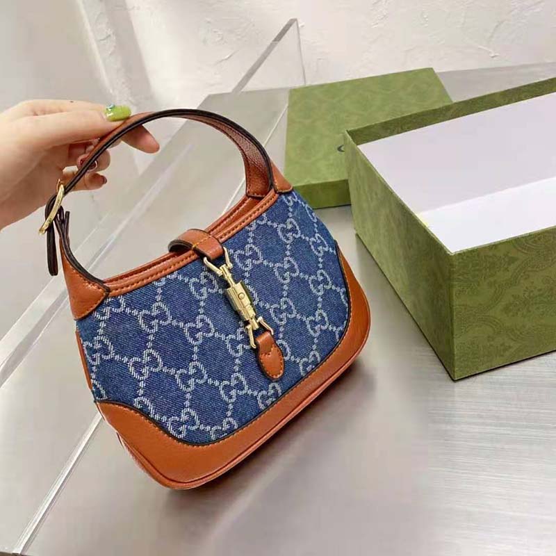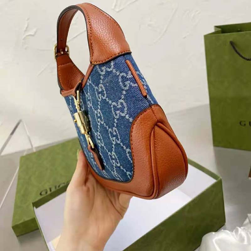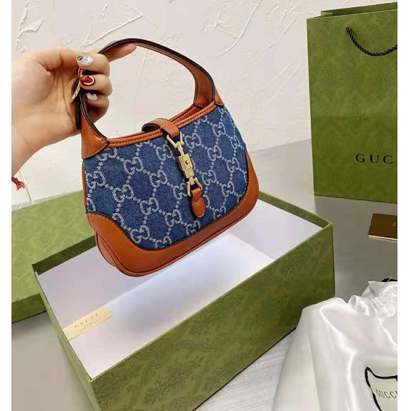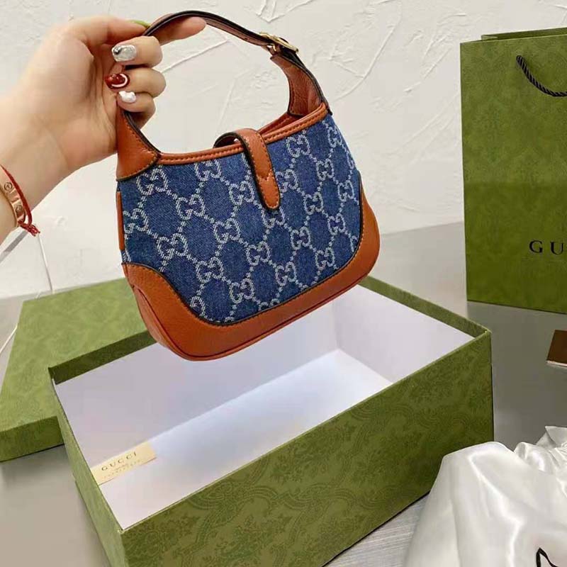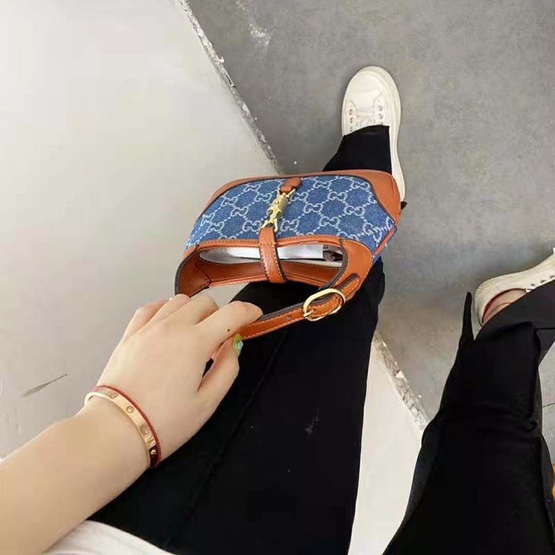 Brought back to the forefront, the recognizable shape is presented in denim with a GG motif and enhanced with an additional, detachable shoulder strap.