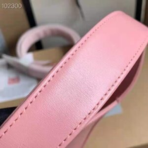 Brought back to the forefront, the recognizable shape is presented in light pink leather and enhanced with an additional, detachable shoulder strap.