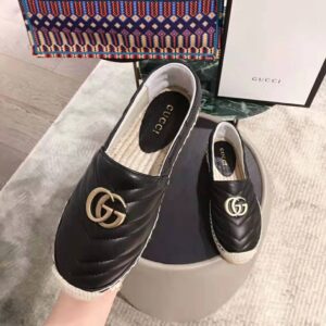 Gucci Women Leather Espadrille with Double G in Matelassé Chevron Leather-Black