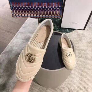 Finished with the emblematic Double G hardware this espadrille is made in matelassé chevron leather—a now recognizable Gucci material.