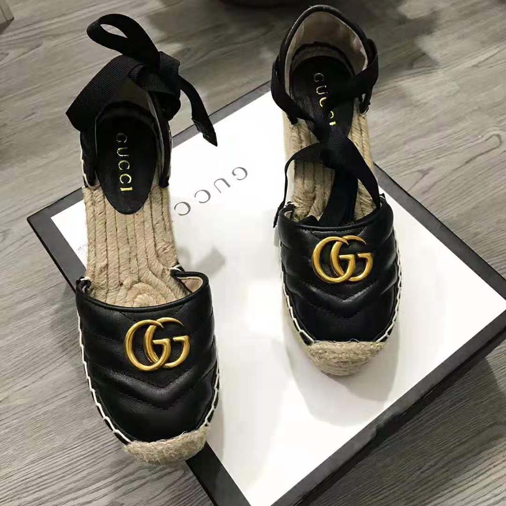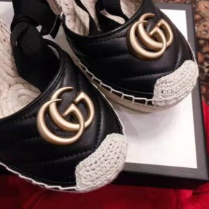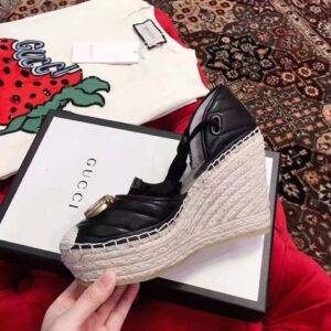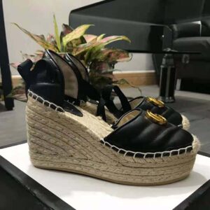 Crafted in black leather set against a cord platform, these espadrilles reflect the marine feel sprinkled throughout the Spring Summer 2019 collection.