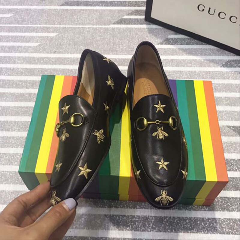 Black leather with gold thread embroidered bees and stars