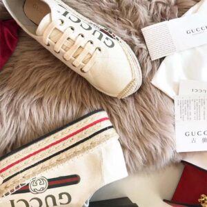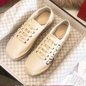 Gucci Women Shoes Logo Platform Espadrille 50mm Heel-White