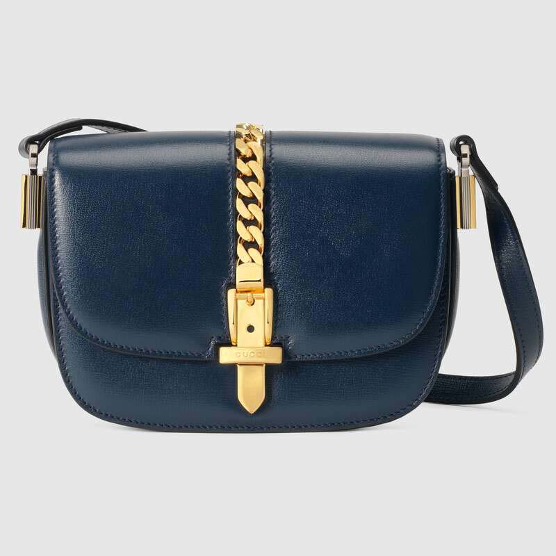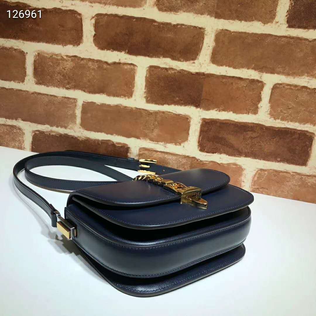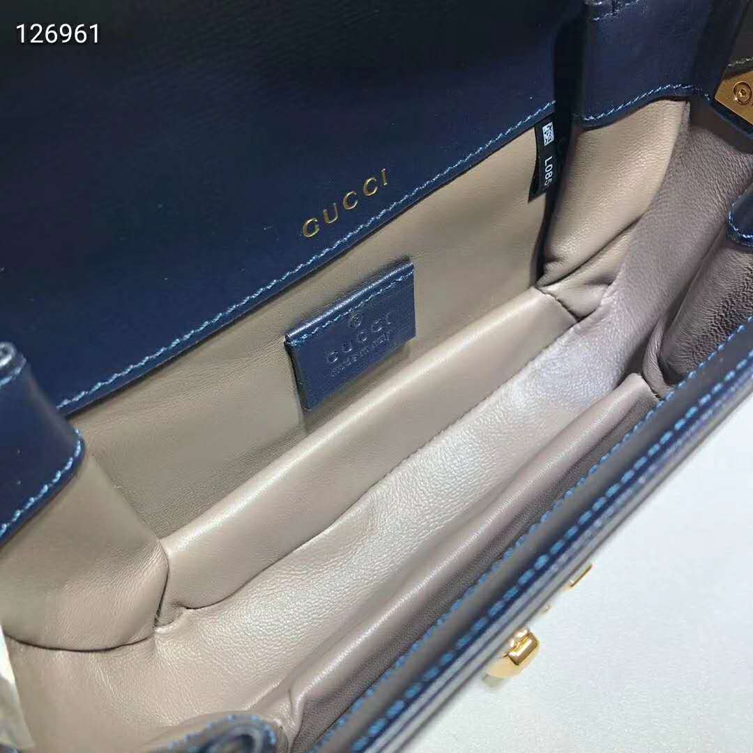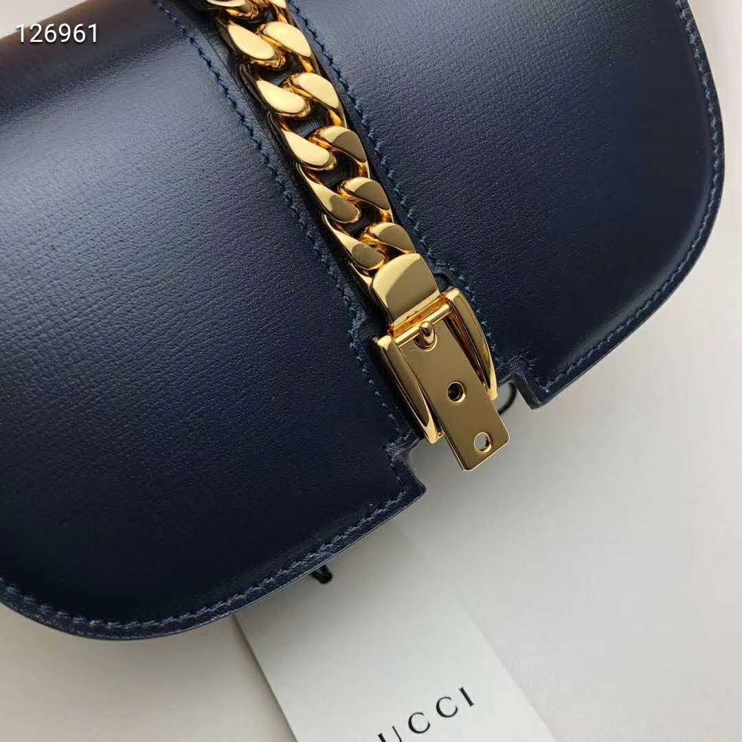 Gucci Women Sylvie 1969 Mini Shoulder Bag Textured Leather Vintage Navy