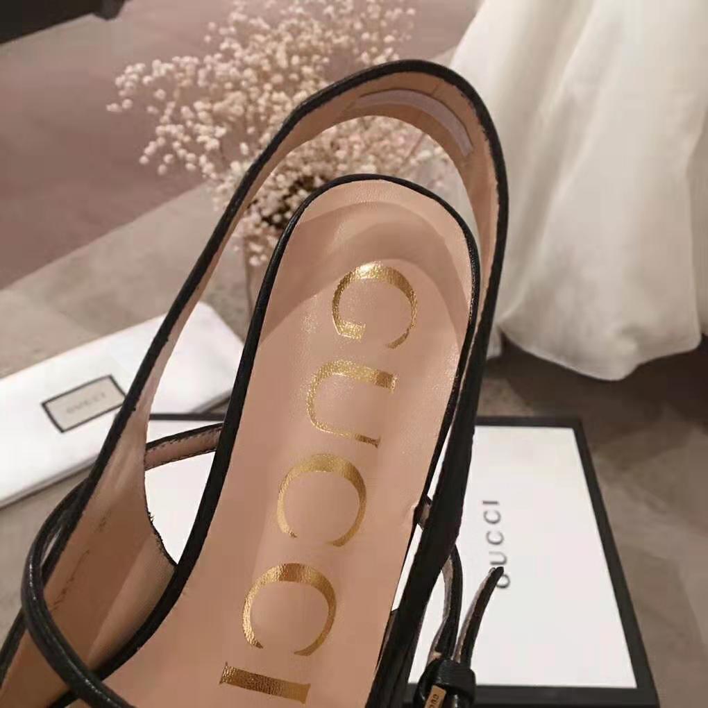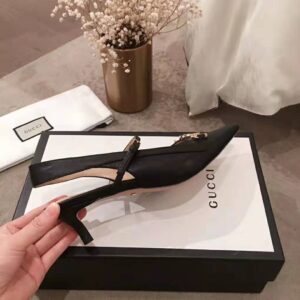Gucci Women Zumi Leather Low-Heel Slingback Pump 4.6cm Height-Black