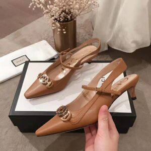Gucci Women Zumi Leather Low-Heel Slingback Pump 4.6cm Height-Brown