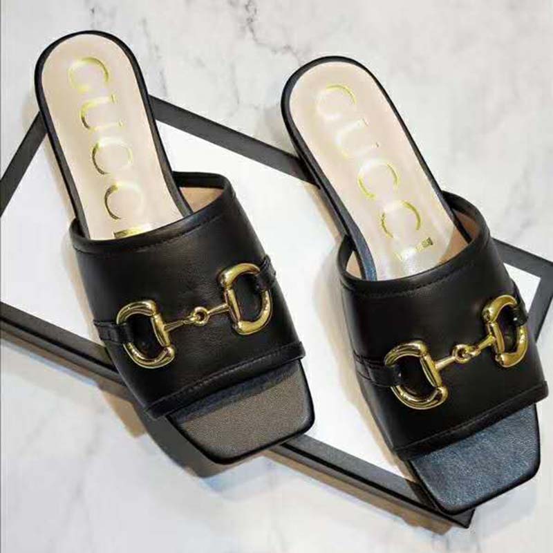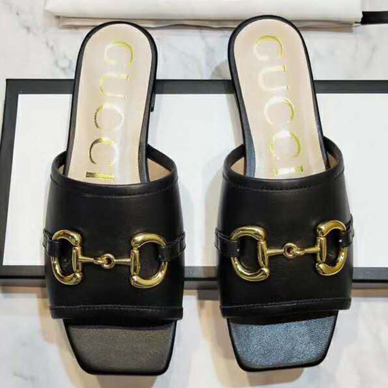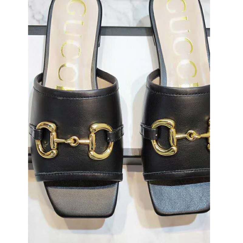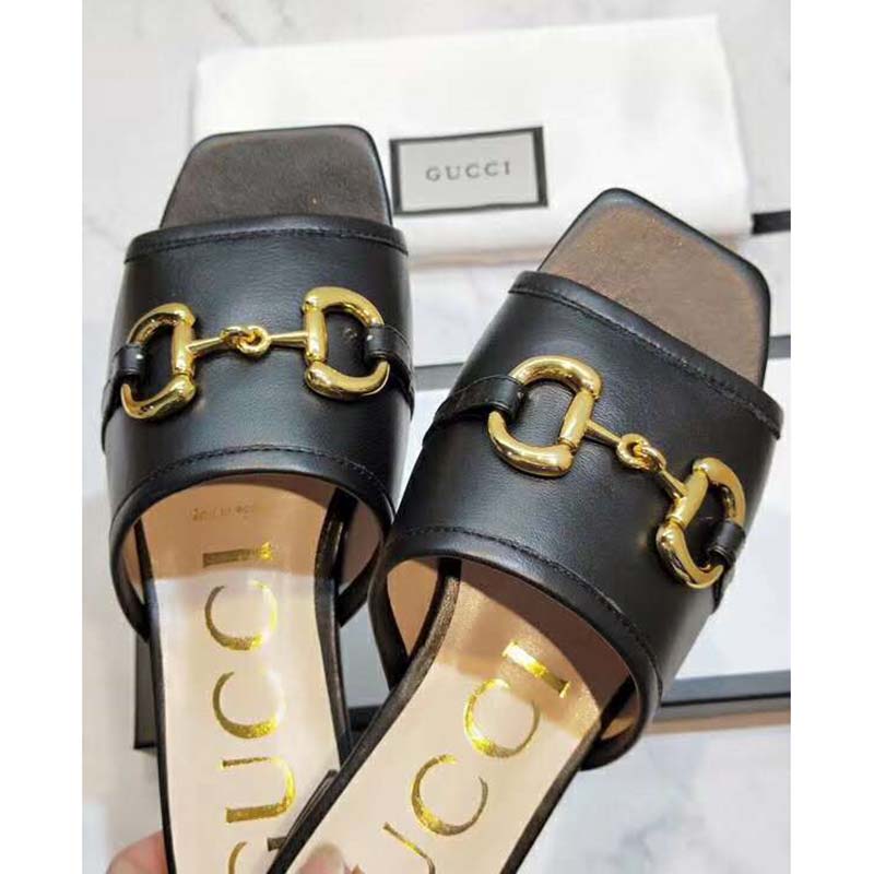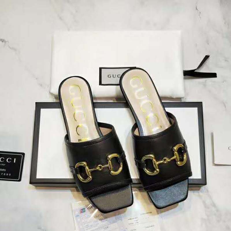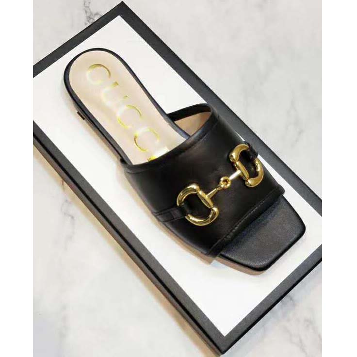 Gucci Women’s Leather Slide Sandal with Horsebit Black Leather