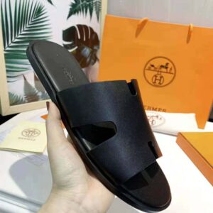 Sandal in calfskin with iconic “H” cut-out and raw-edged detail