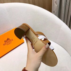 Sandal in calfskin with two intertwined initials and straight cut edges
