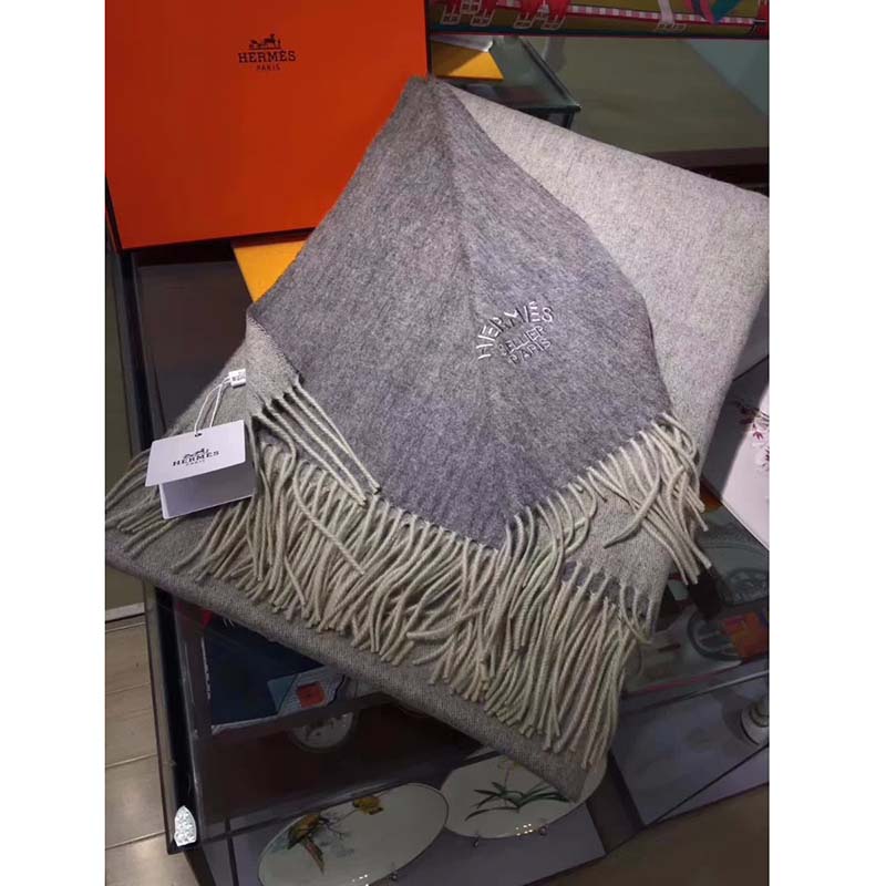 Hermes double-faced cashmere two-tone stole 100% cashmere Measures 27.5″ x 69″