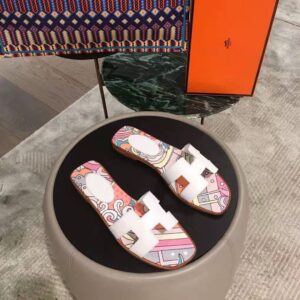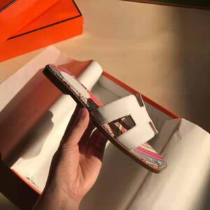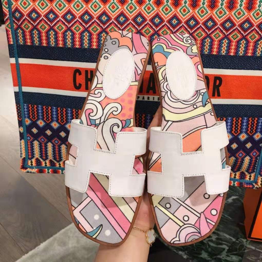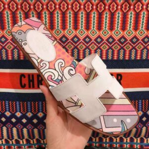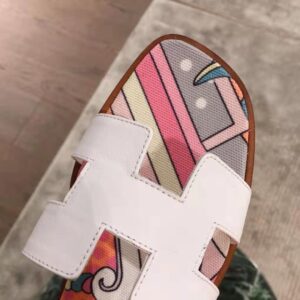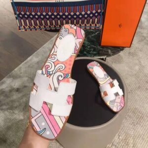 Sandal in cotton canvas with “Faubourg rainbow” print and iconic “H” cut-out