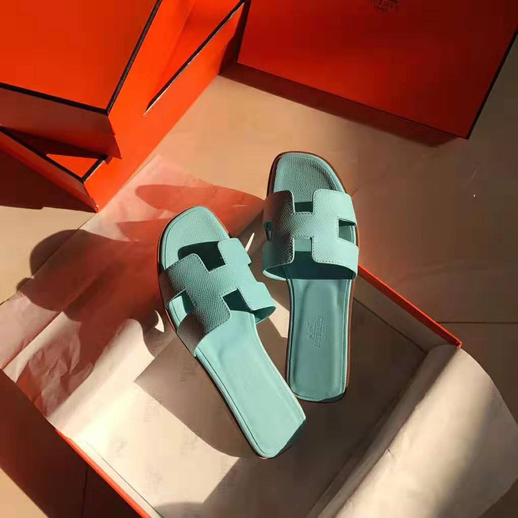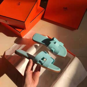 Hermes Women Oran Sandal Epsom Calfskin Iconic “H” Cut-Out-Aqua