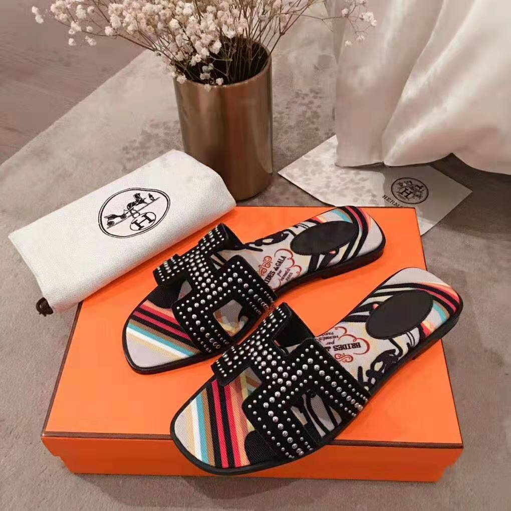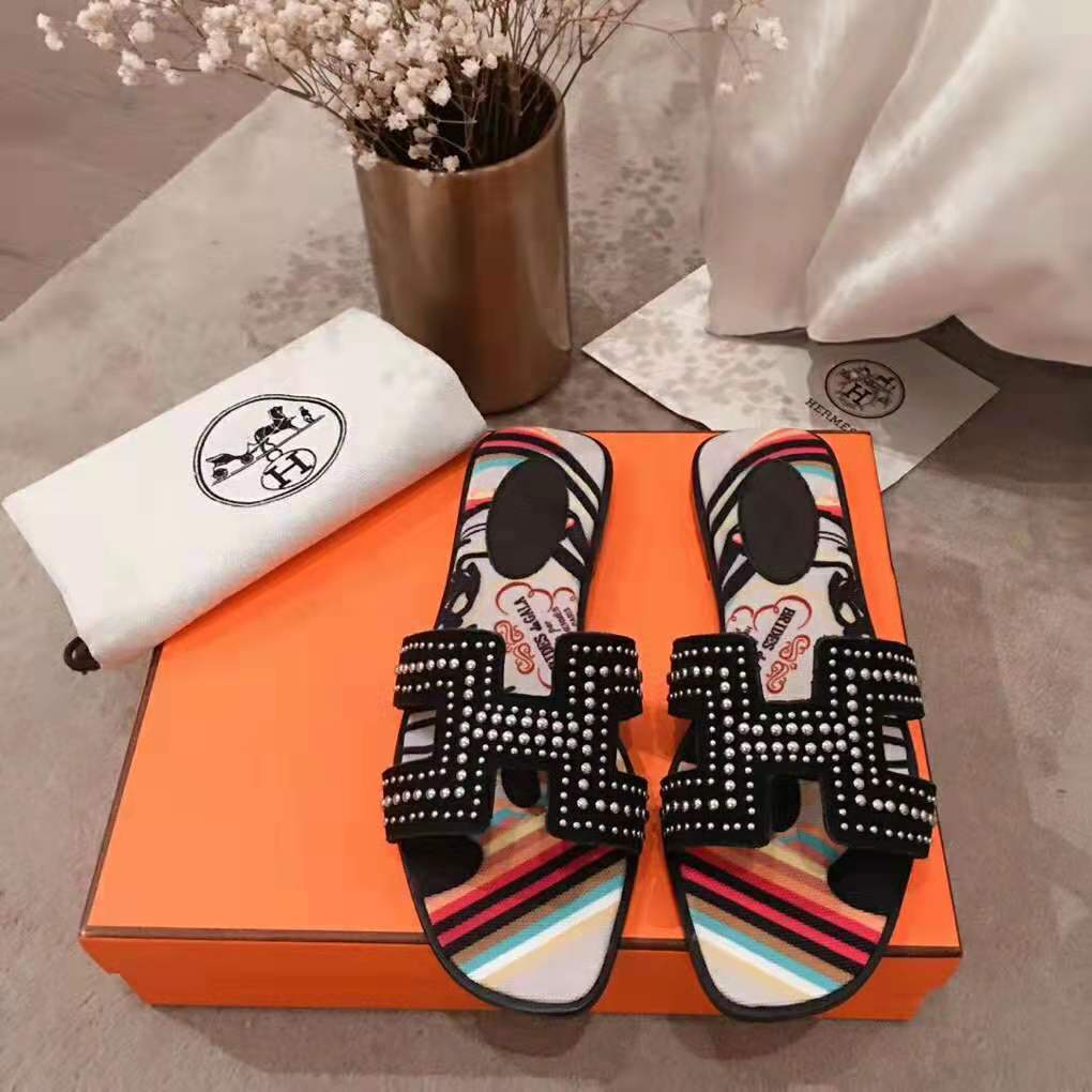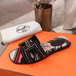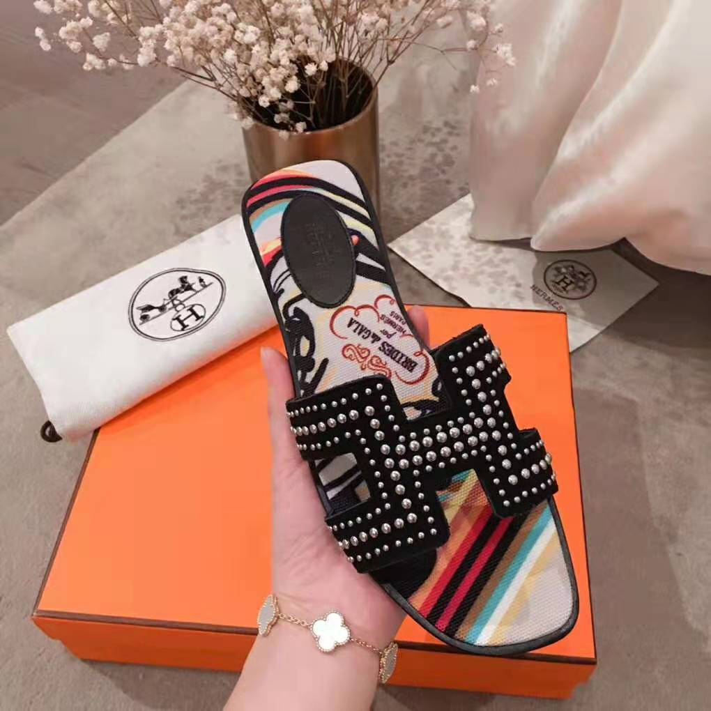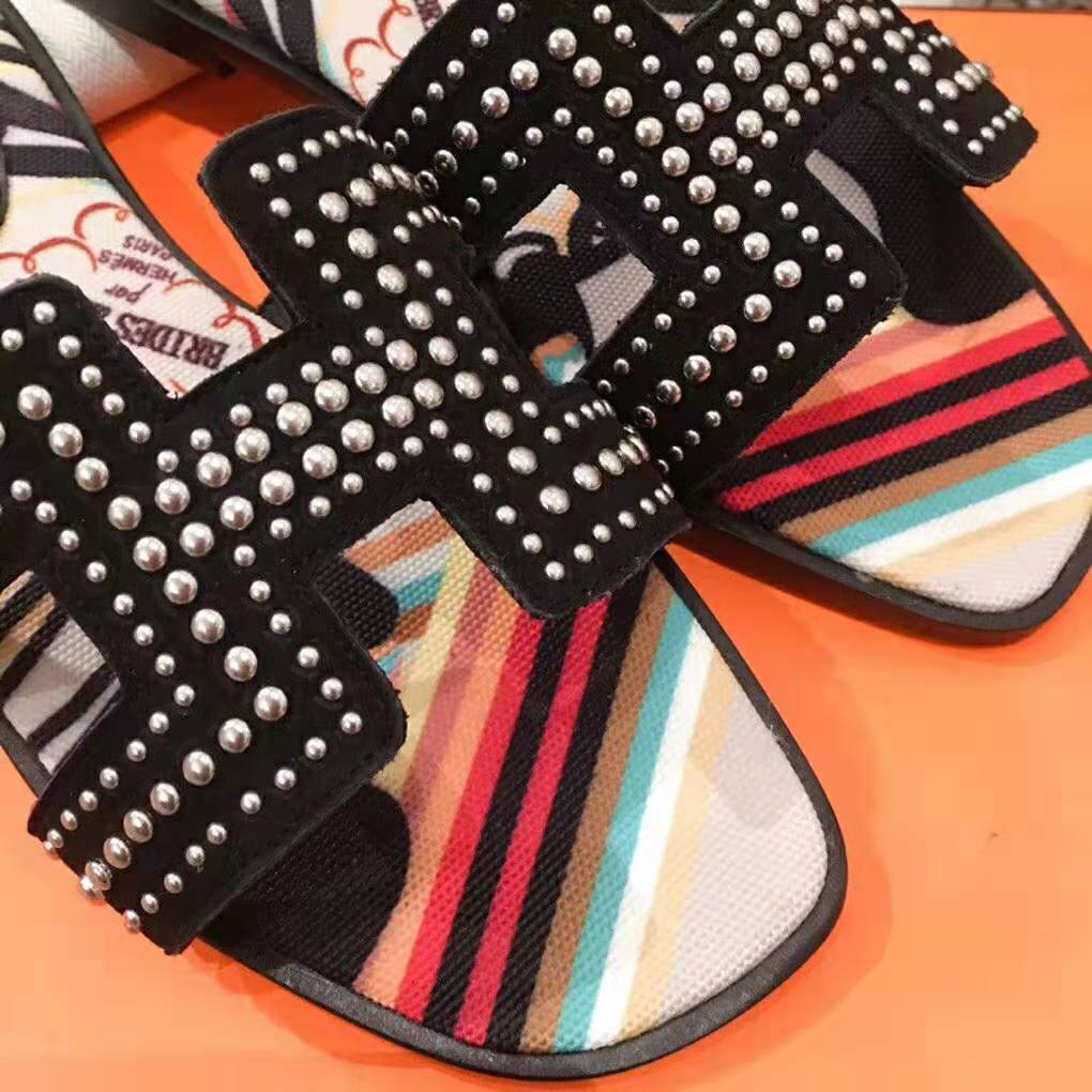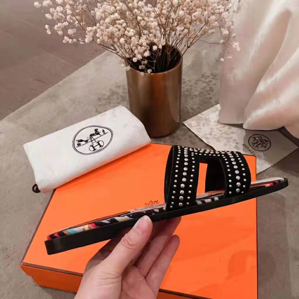 Sandal in suede goatskin with palladium plated studs and iconic “H” cut-out.