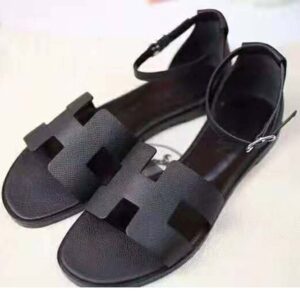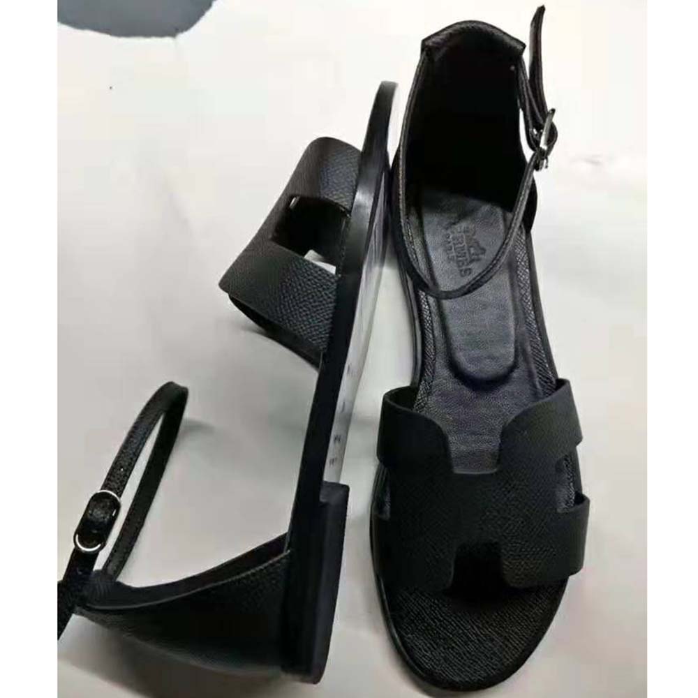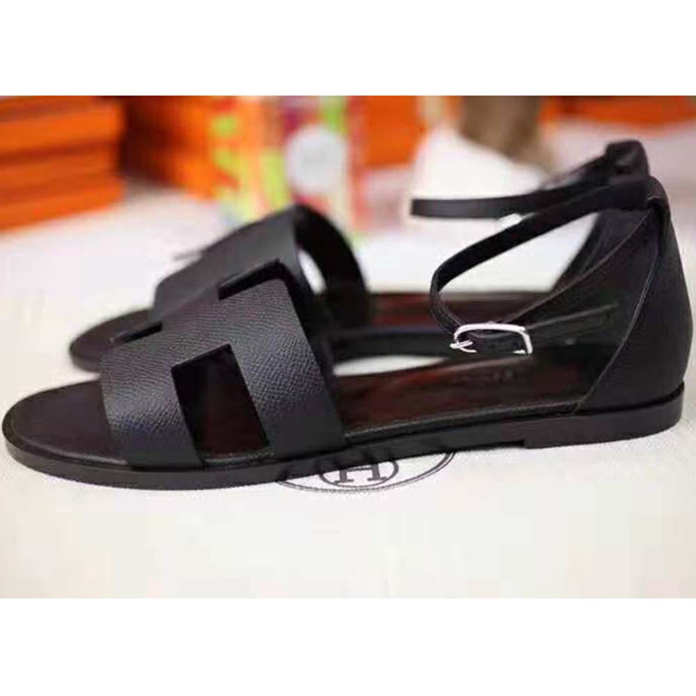 Sandal in Epsom calfskin with “H” cut-out detail and thin ankle strap