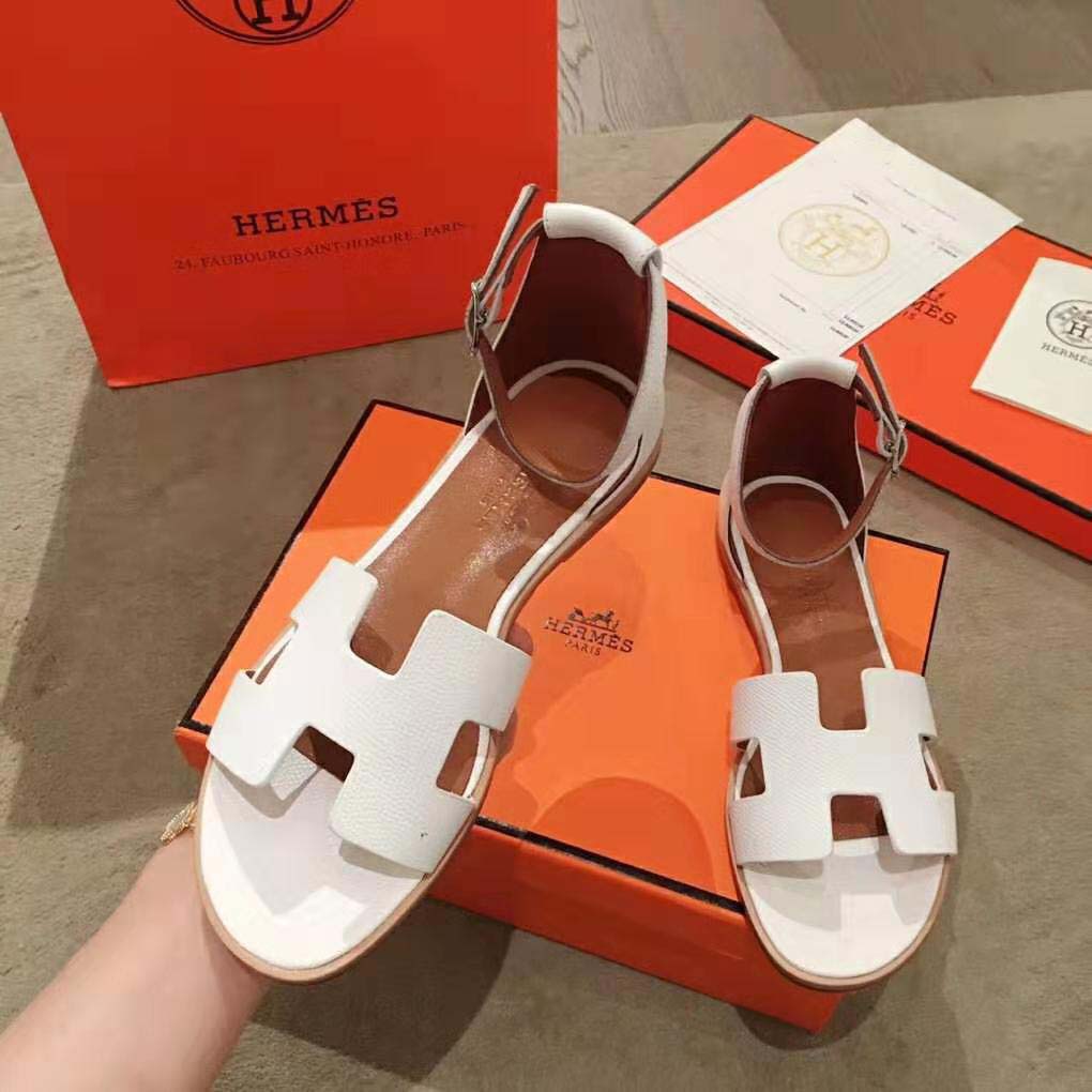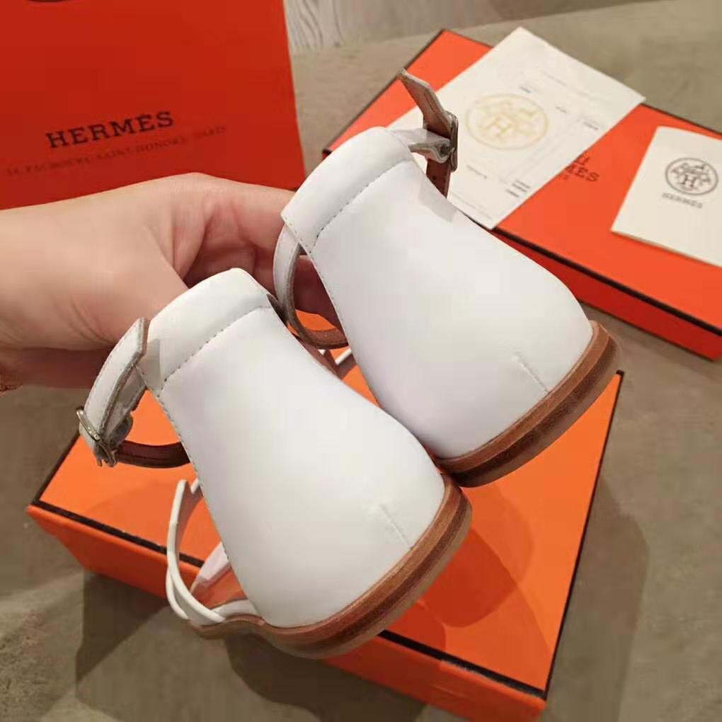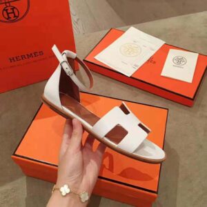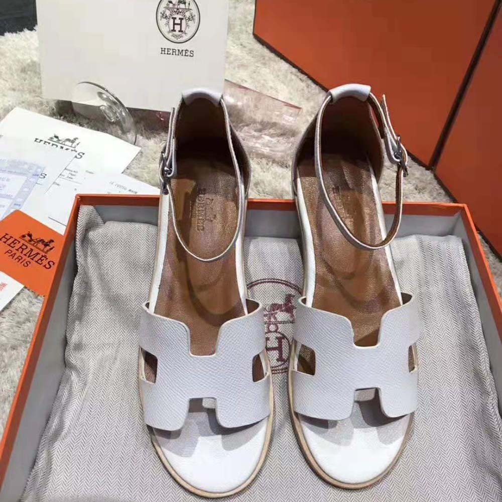 Sandal in Epsom calfskin with “H” cut-out detail and thin ankle strap