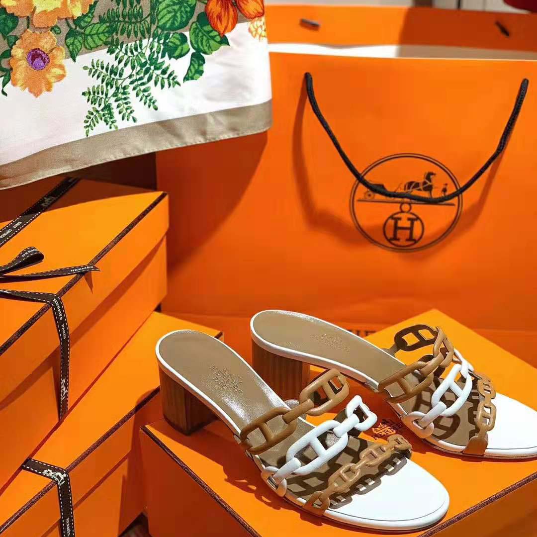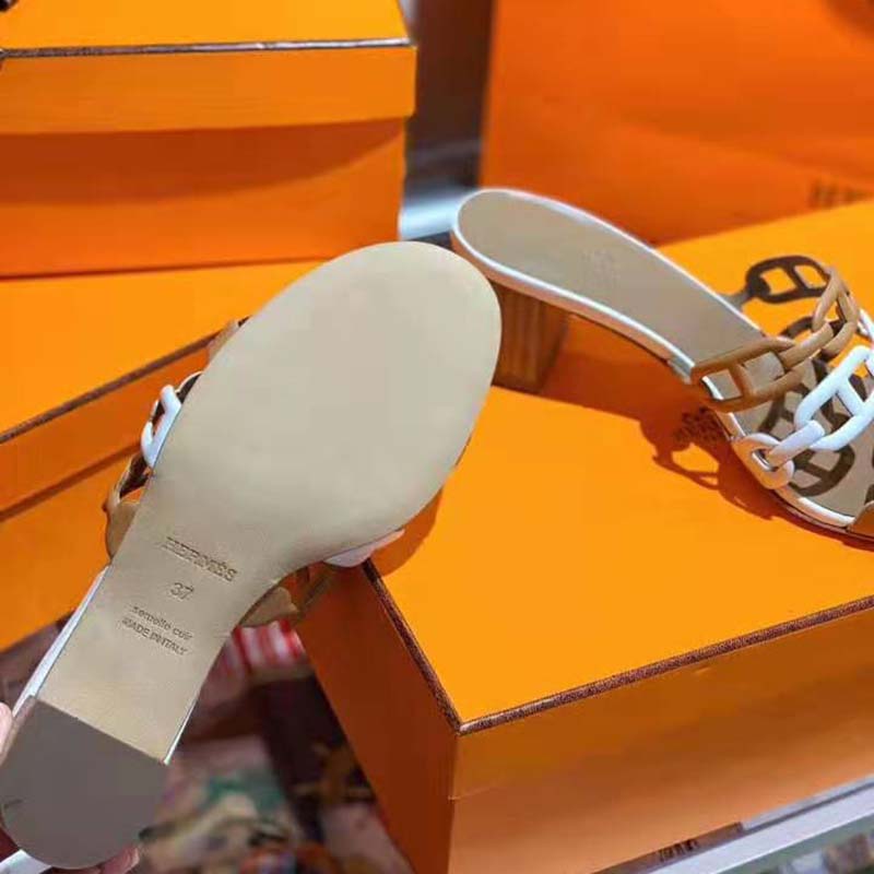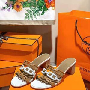 Hermes Women Tandem Sandal in Nappa Leather 5.1cm Heel-Brown