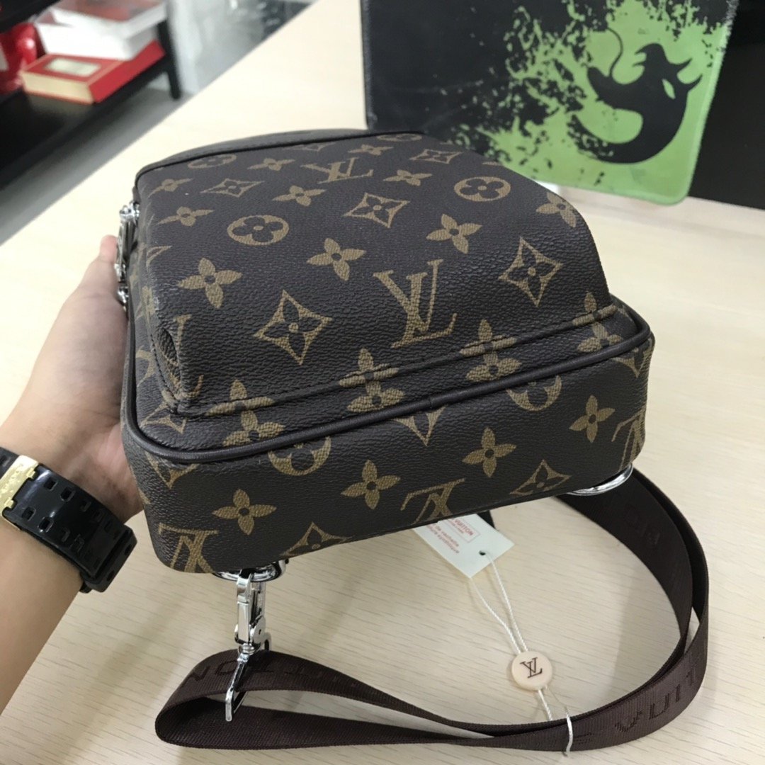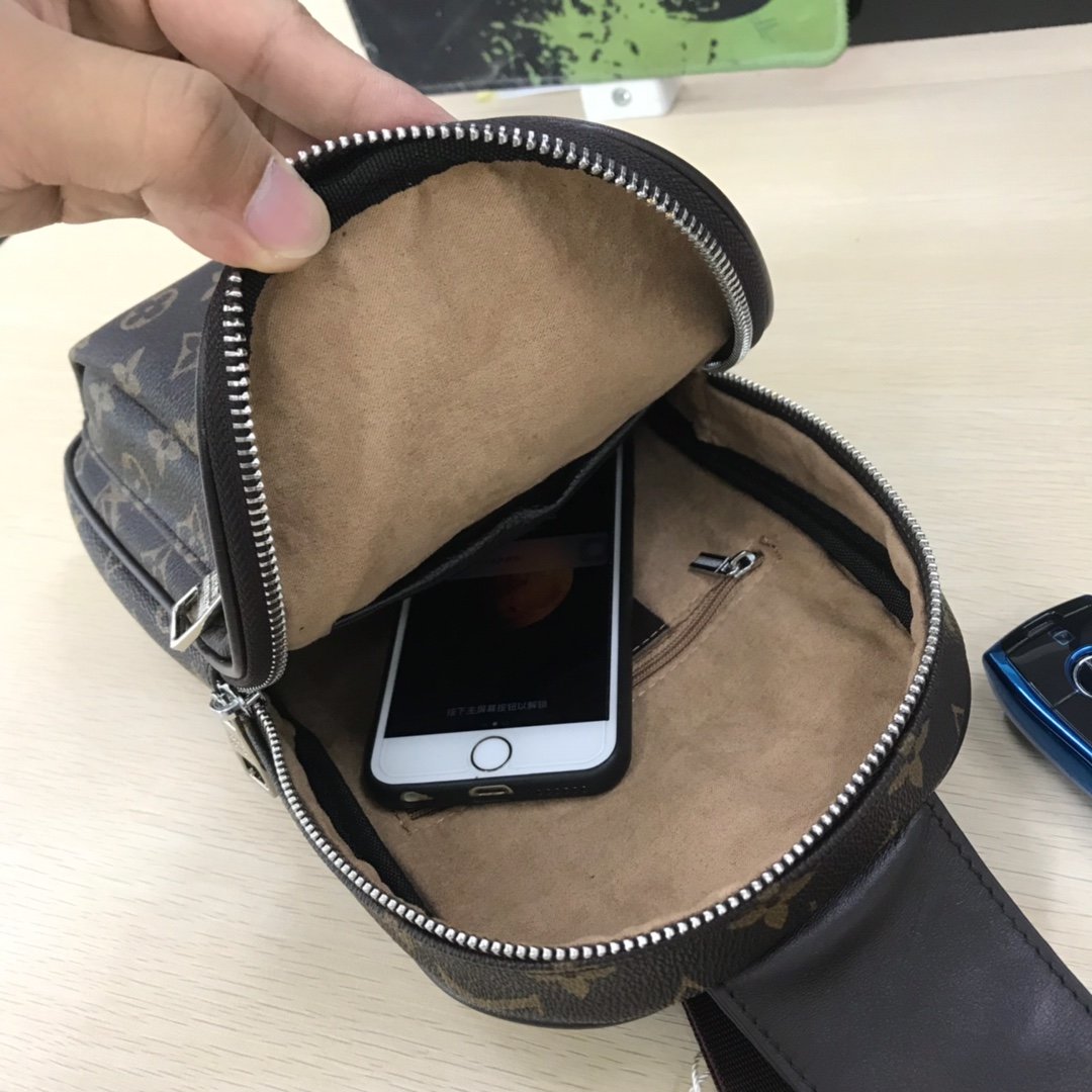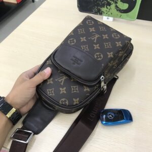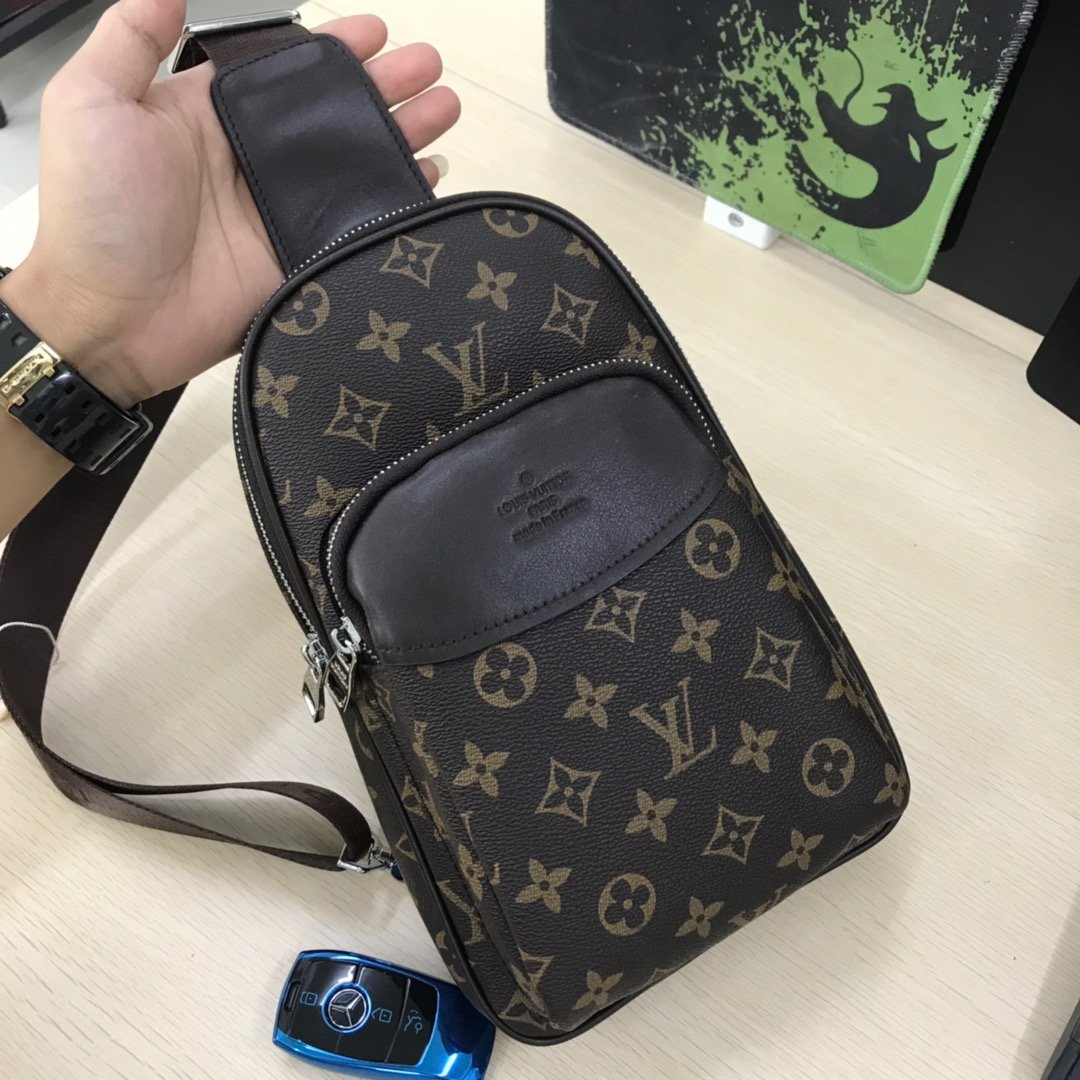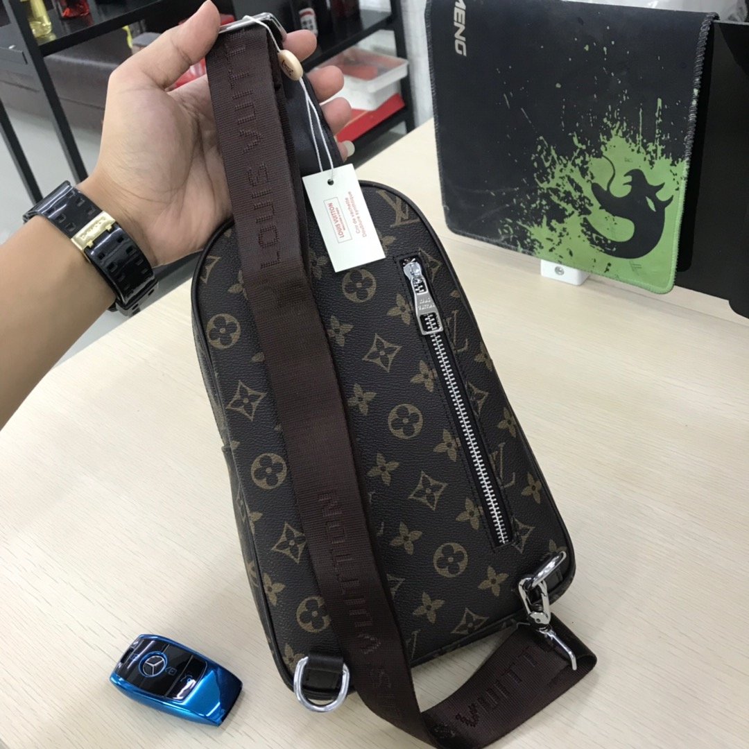 The Avenue Sling Bag in Monogram Macassar coated canvas fits urban lifestyles perfectly: compact and sporty, with a cool and casual attitude. Its “smart” strap adjusts for left- or right-side carry. The body-friendly shape and double zip keep valuables close and secure.