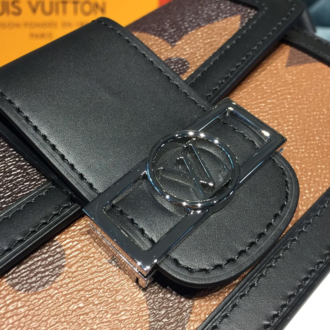 For Spring-Summer 2019 Nicolas Ghesquière unveils a new must-have: the Dauphine Mini handbag. This adorably compact model is crafted from Monogram and Monogram Reverse canvas, trimmed with smooth tan calfskin. The high-shine LV lock and leather smart strap add a modern twist to this signature piece, which is perfectly sized for day-to-evening wear.
