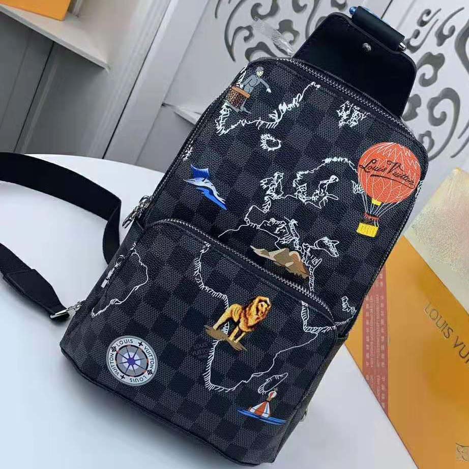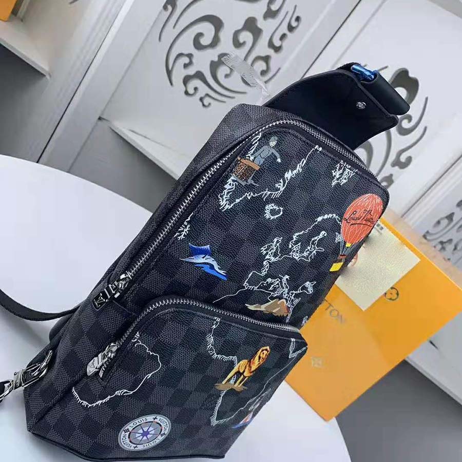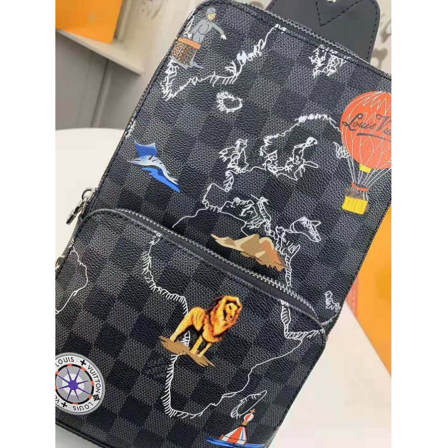 Made from Damier Graphite canvas, the Avenue Sling Bag is adorned with a print evoking the maps of the Renaissance.