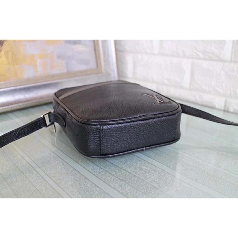 Fashioned from supple Taurillon leather, the Danube Slim PM city bag features an embroidered LV Initials signature in a contrasting color for Fall 2019.