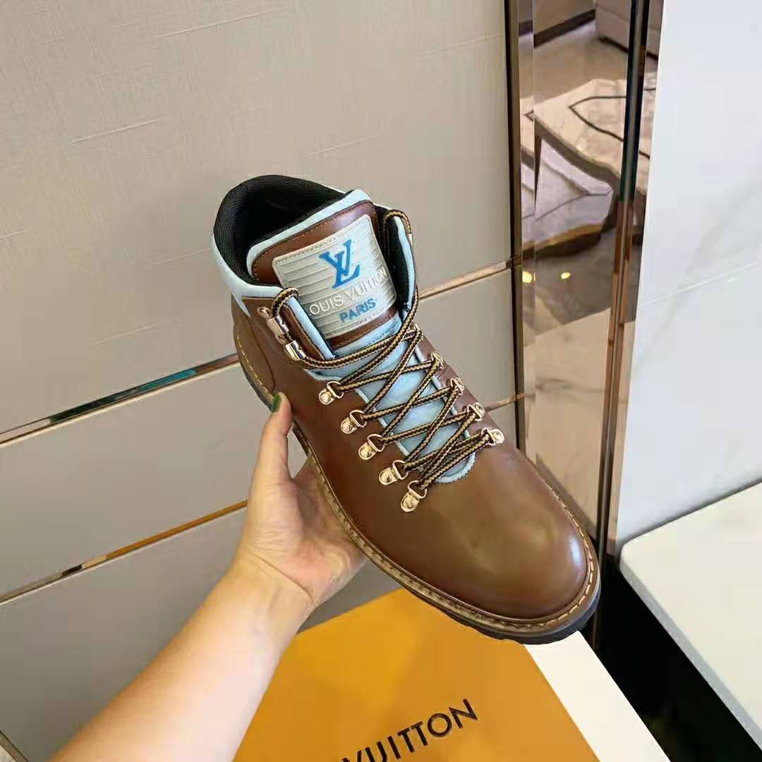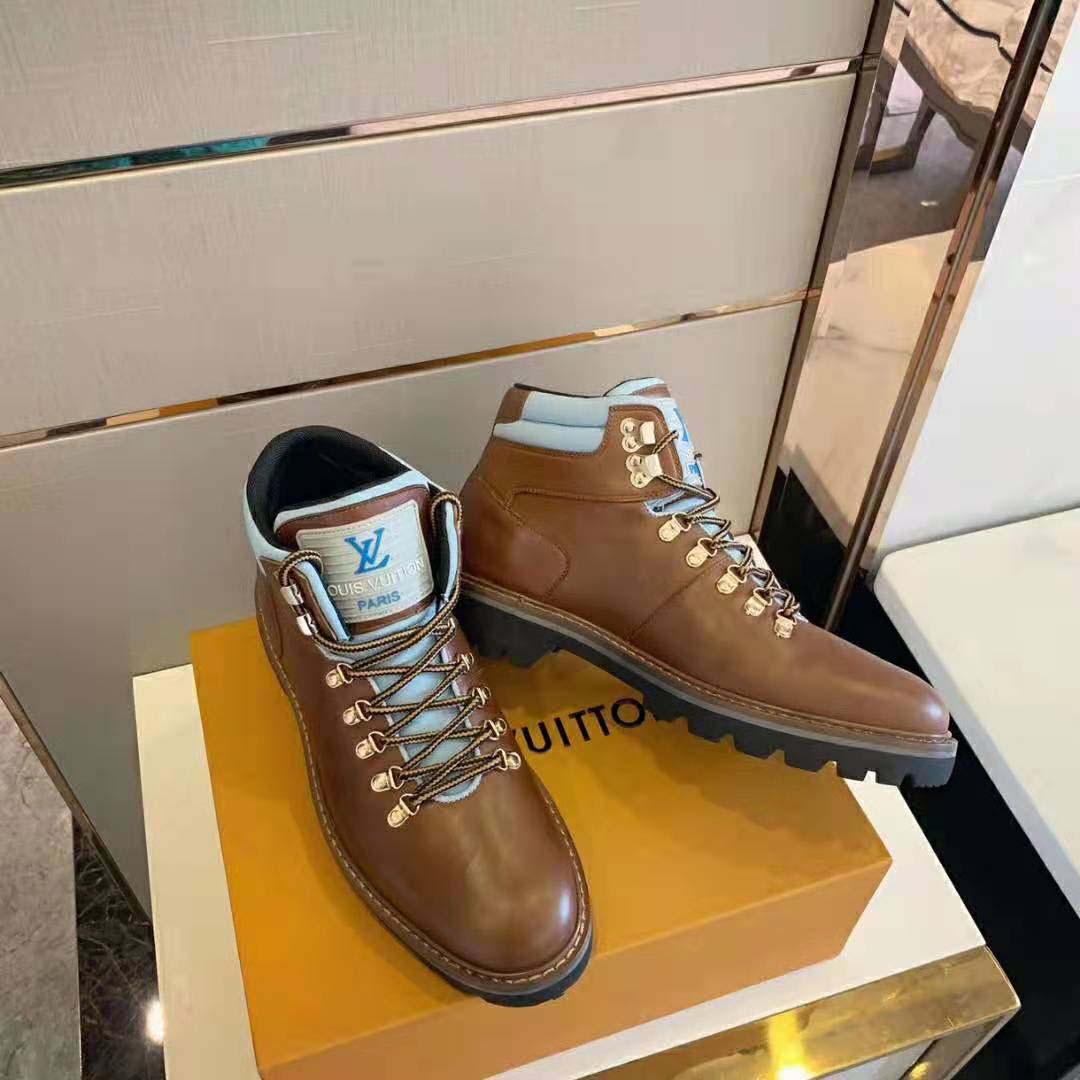 The LV Initials are embossed on the side, while the tongue features a Louis Vuitton label.