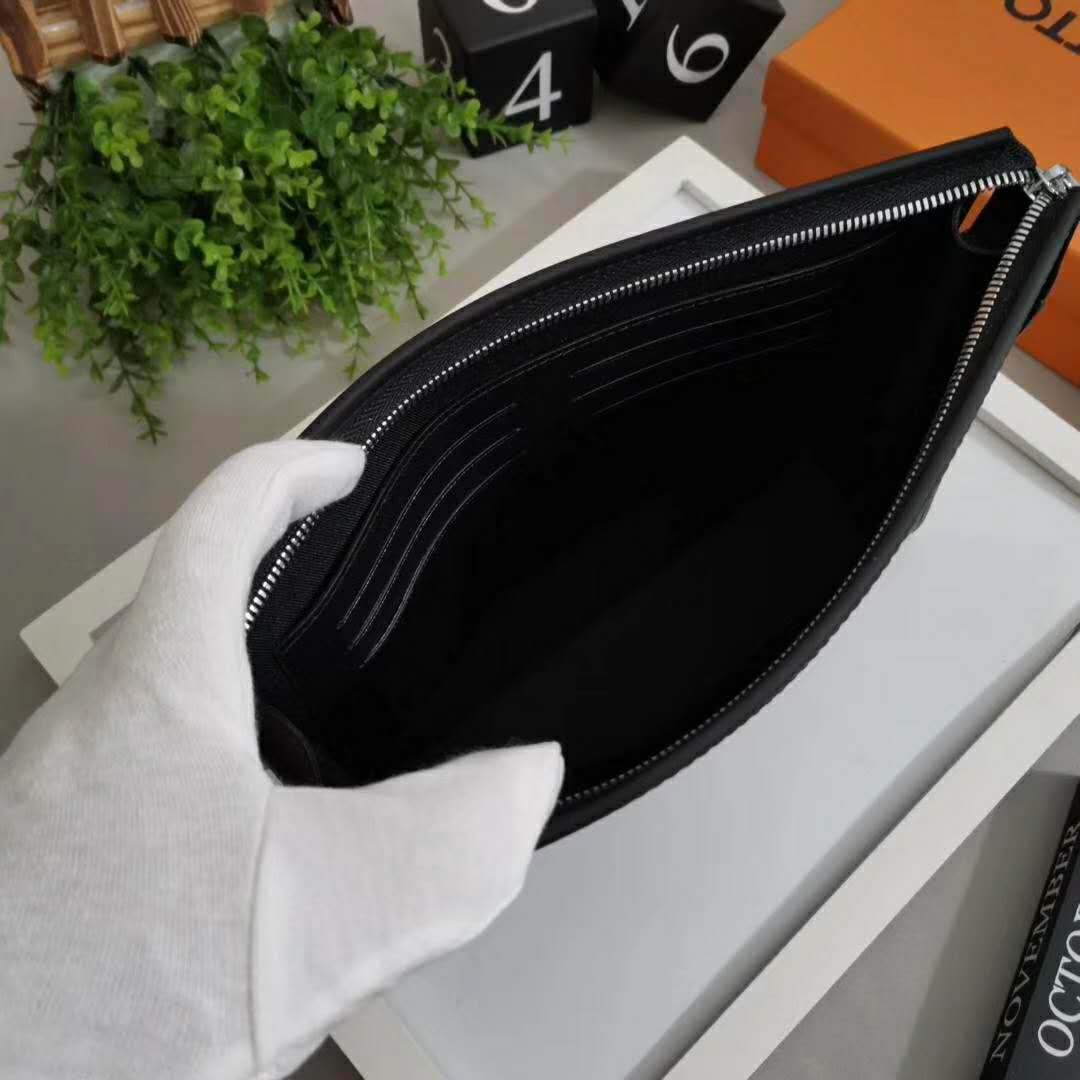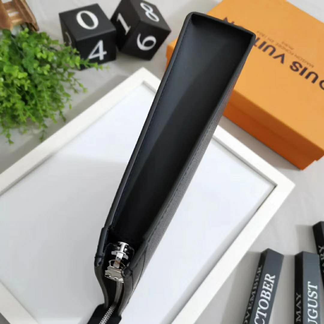 The versatile Pochette Voyage MM in Damier Graphite canvas can be hand-carried as a small portfolio or used as a pouch inside a larger bag.