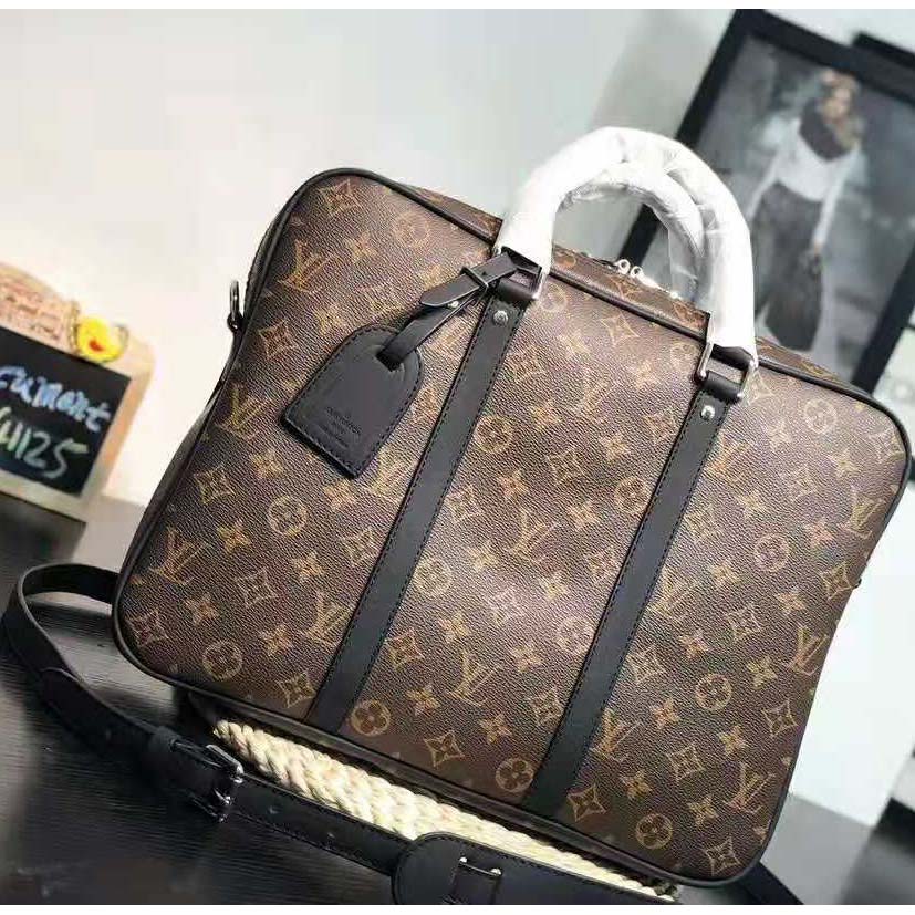 The Porte-Documents Voyage PM in Monogram Macassar canvas is a modern take on Louis Vuitton’s iconic design.