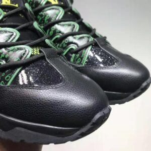 The Zig Zag sneaker comes in a mix of materials contrasting black with flashes of green.