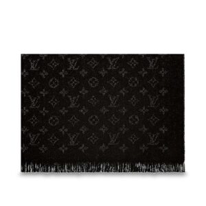 Louis Vuitton LV Unisex Monogram Shawl Scarf in Silk and Wool Grey