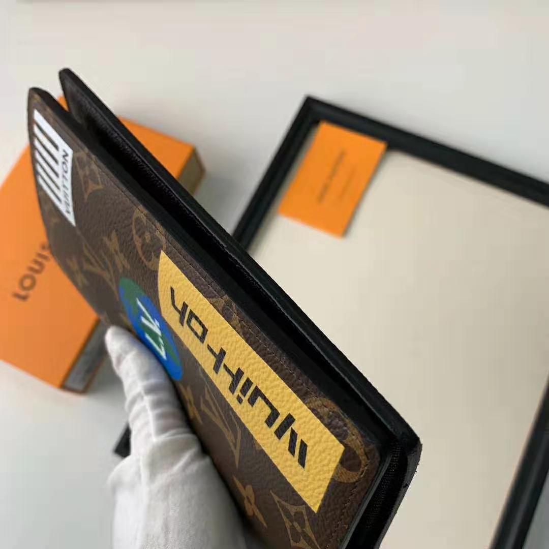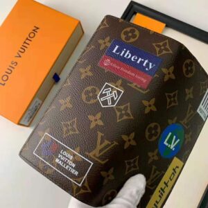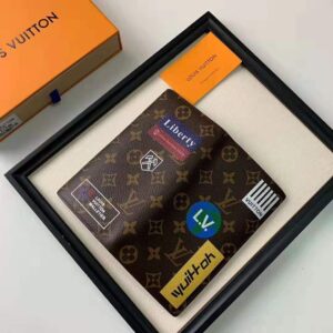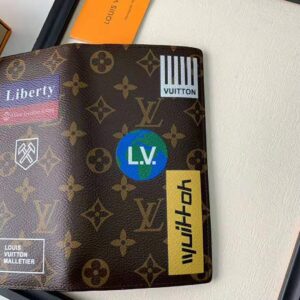 Louis Vuitton’s iconic Monogram canvas provides the background for colorful printed stickers, which lend this practical piece a standout look.