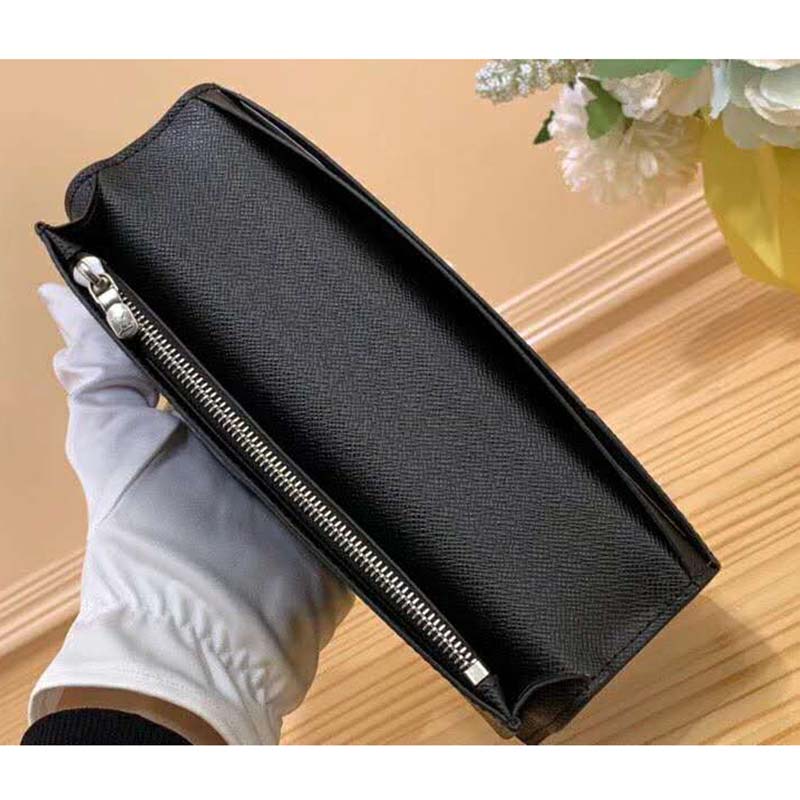 Tall and trim, the Brazza wallet takes on a new contemporary chic with Louis Vuitton’s elegant Monogram Macassar blend of coated canvas and fine cowhide leather.