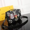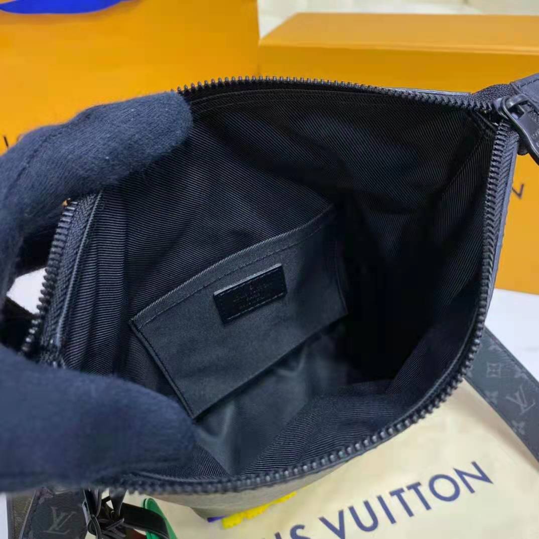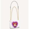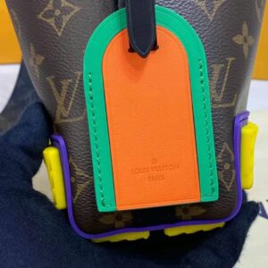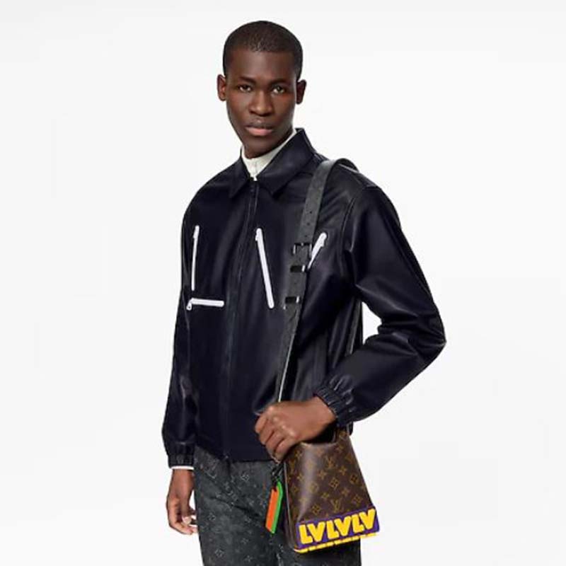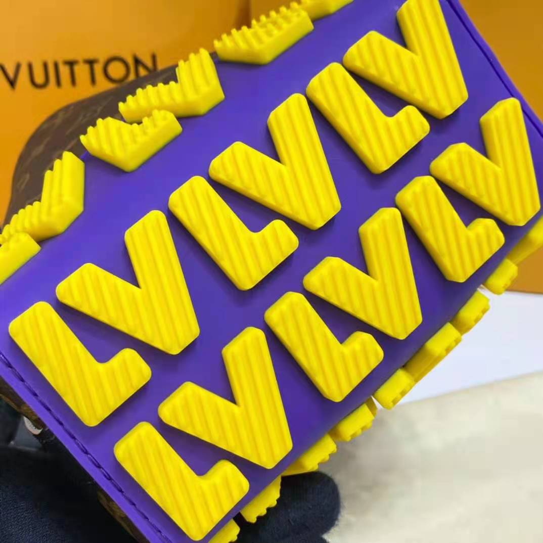 A mix of classic Monogram and Monogram Eclipse canvas is enlivened with the House’s initials in colorful latex for an eye-catching signature touch.