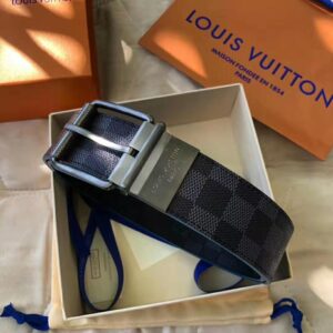 Louis Vuitton LV Unisex Damier Print 40mm Reversible Belt in Damier Canvas-Blue