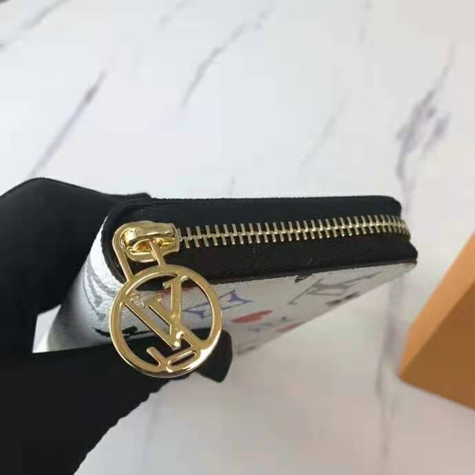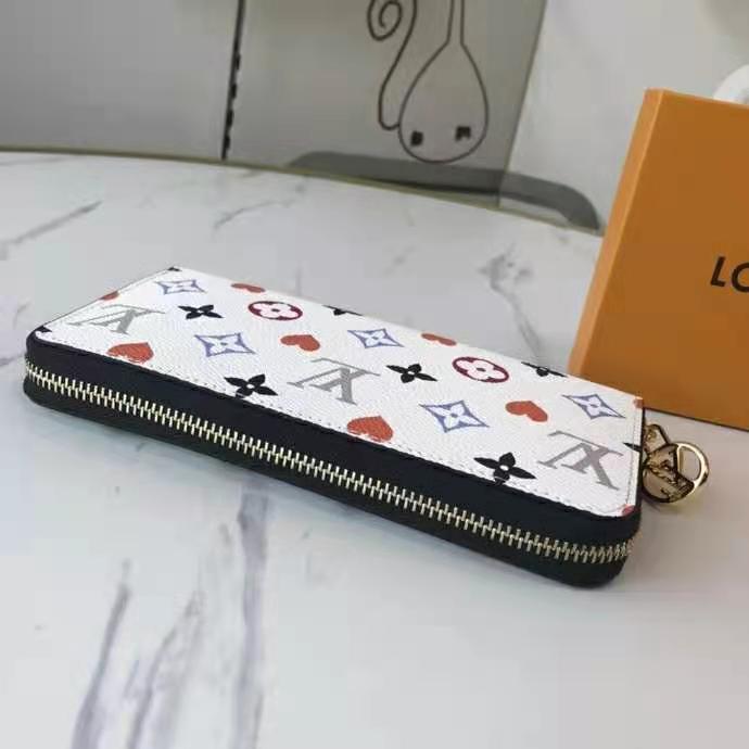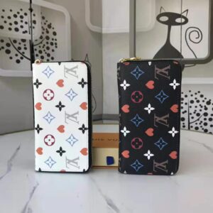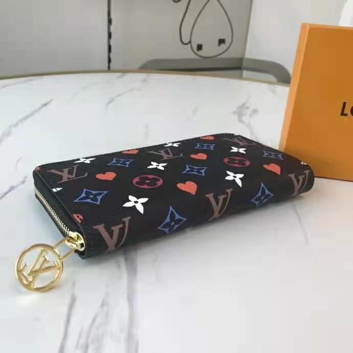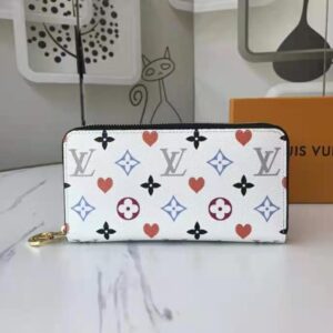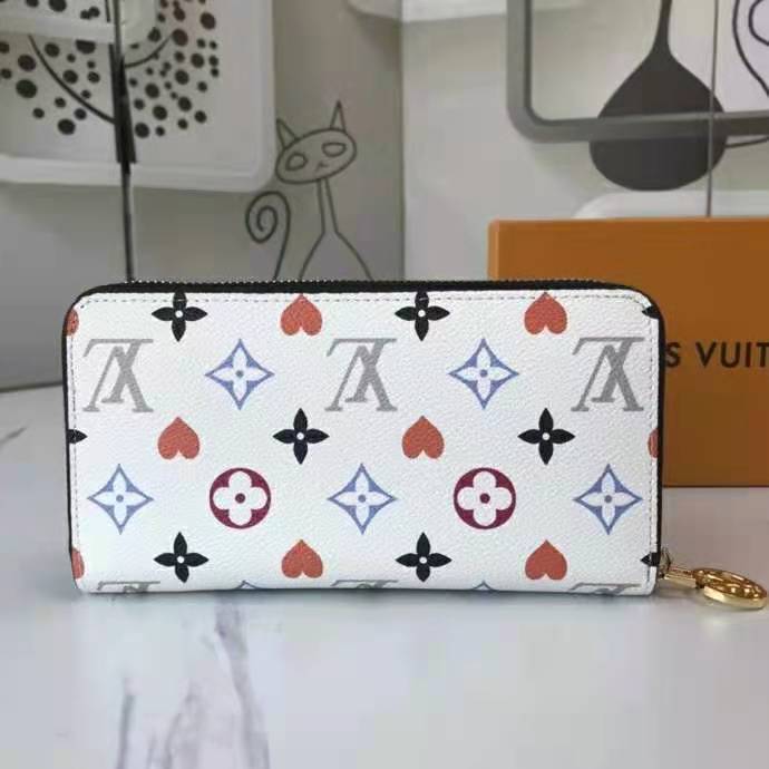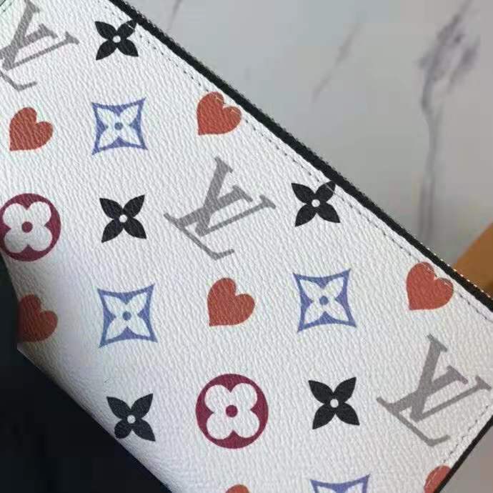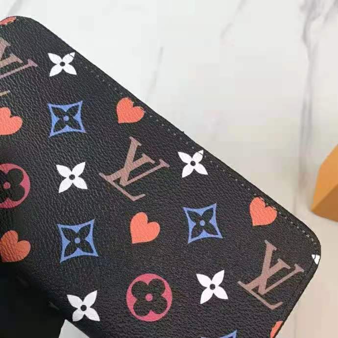 This special edition of the all-in-one Zippy wallet features the new Game On canvas, with pop colors and heart symbols in place of Monogram Flowers.