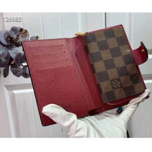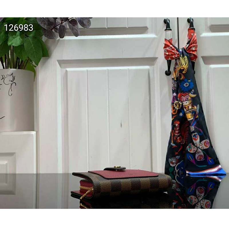 This version is crafted from Damier Ebene coated canvas with two colors of leather trim.