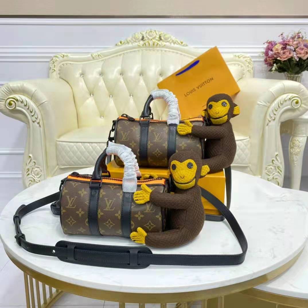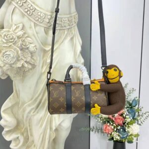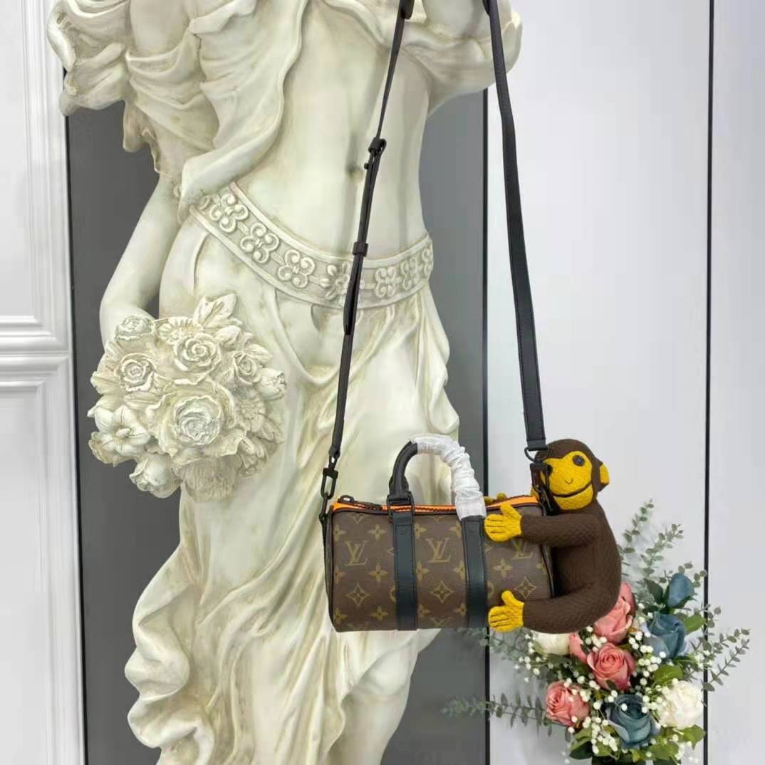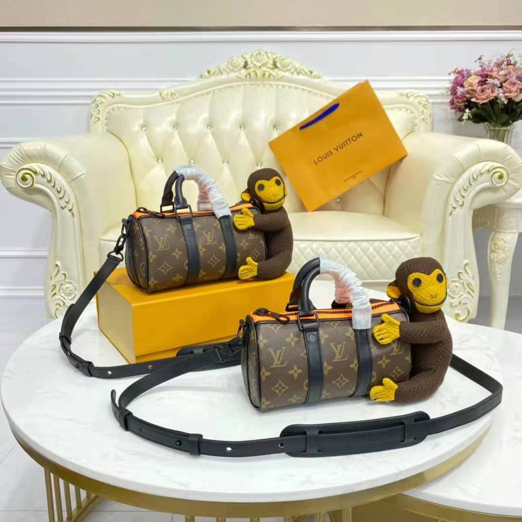 For the Spring-Summer 2021 Collection, Virgil Abloh unveils the Keepall XS bag, accessorized with a knit puppet of an LV friend from his “Zoom with friends” animated film.