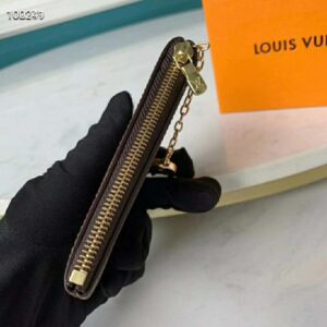 Crafted from historic Damier Ebene canvas, the Key Pouch is a simple design elevated by refined details, such as an LV-engraved zip and grained-leather lining.