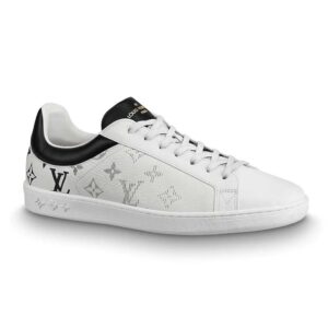Louis Vuitton LV Unisex Luxembourg Sneaker in White Grained Calf Leather-Black