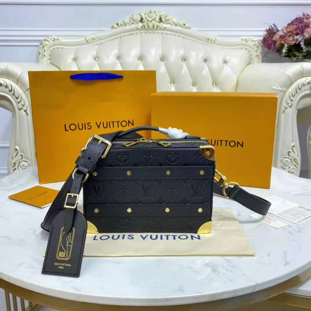 In a Monogram-embossed grained leather that recalls that of basketball, the small rectangular Handle Trunk bag is the fruit of a collaboration between Louis Vuitton and the NBA.