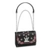 The matte-black chain gives the bag a graphic edge.
