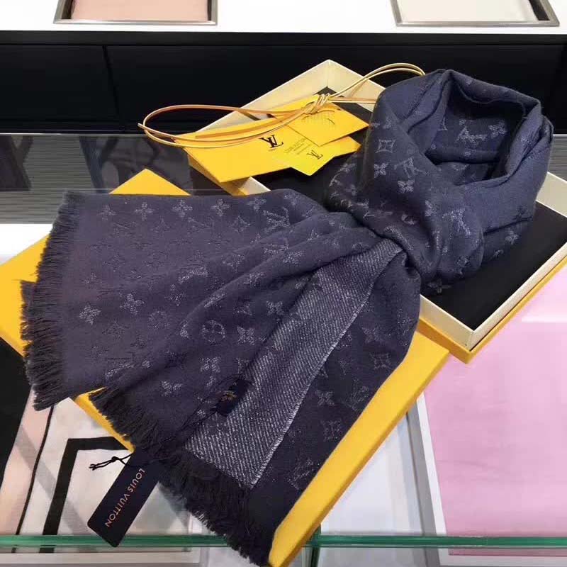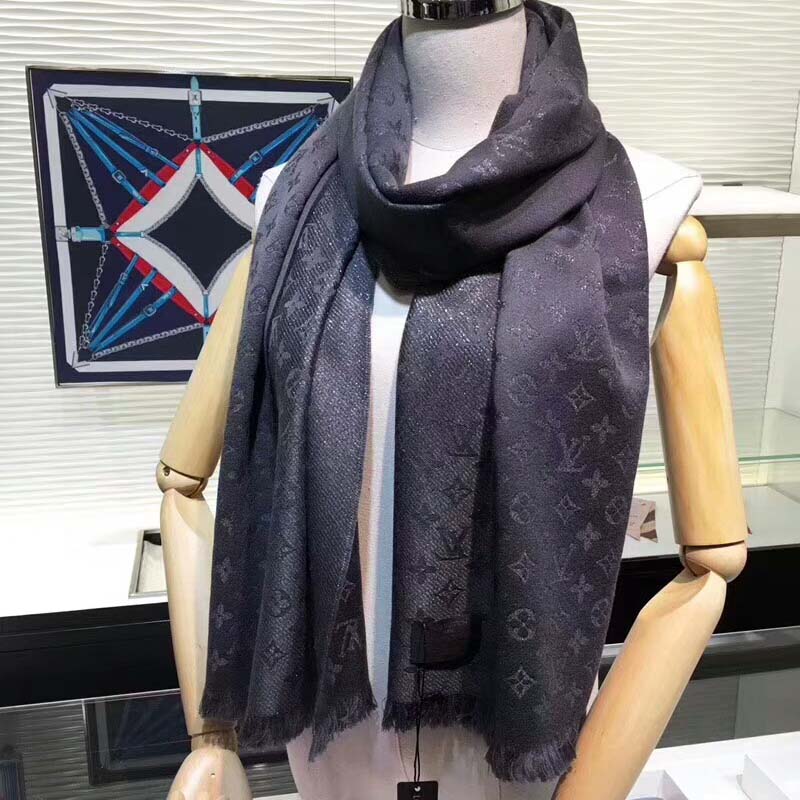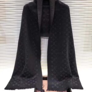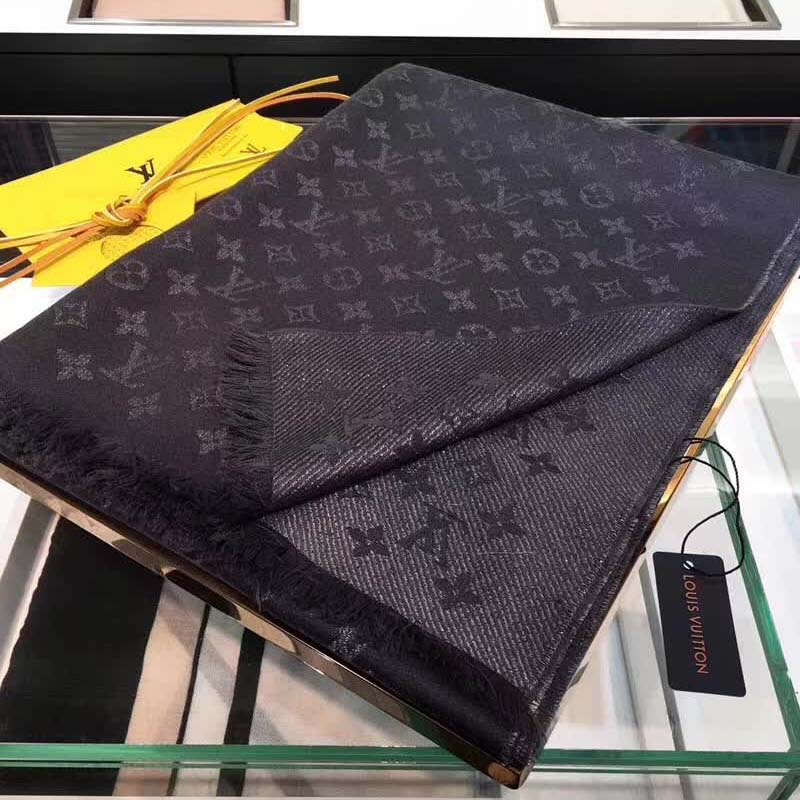 Louis Vuitton LV Unisex Monogram Shawl Scarf in Silk and Wool Black