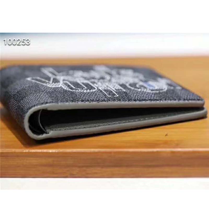 This season, Virgil Abloh’s new Louis Vuitton signature in interlinked gray letters brings a playful feel to this Multiple Wallet in Damier Graphite canvas.