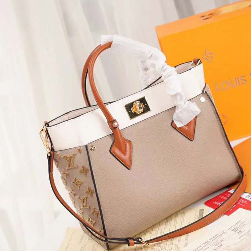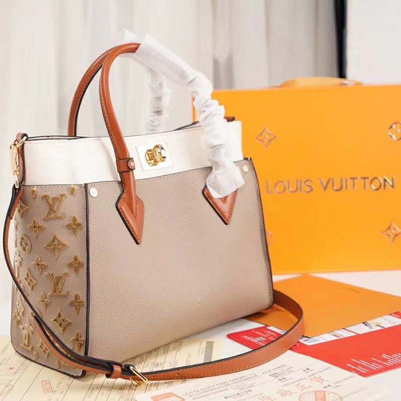 The perfect everyday bag, the On My Side tote is made from small-grained calf leather and discreetly signed with side panels in Nappa Softy leather featuring Monogram tufting.