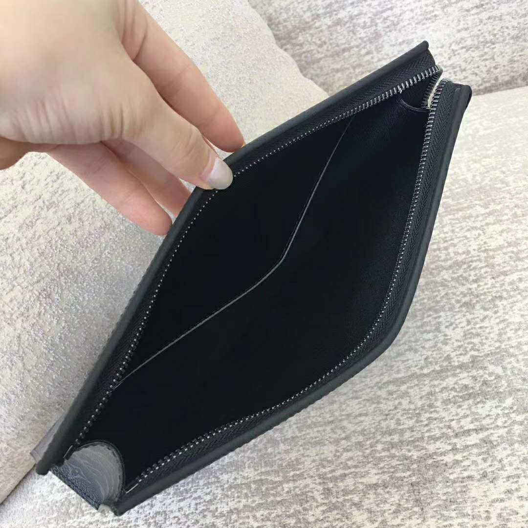 The black leather trim and silver-color zip finish this sporty multi-purpose pouch.