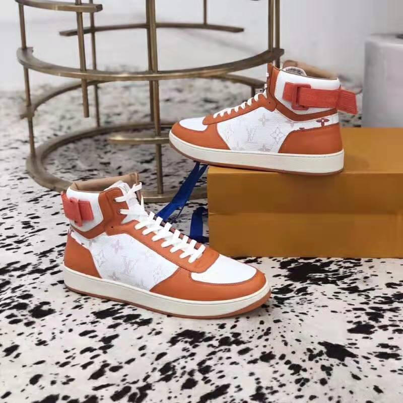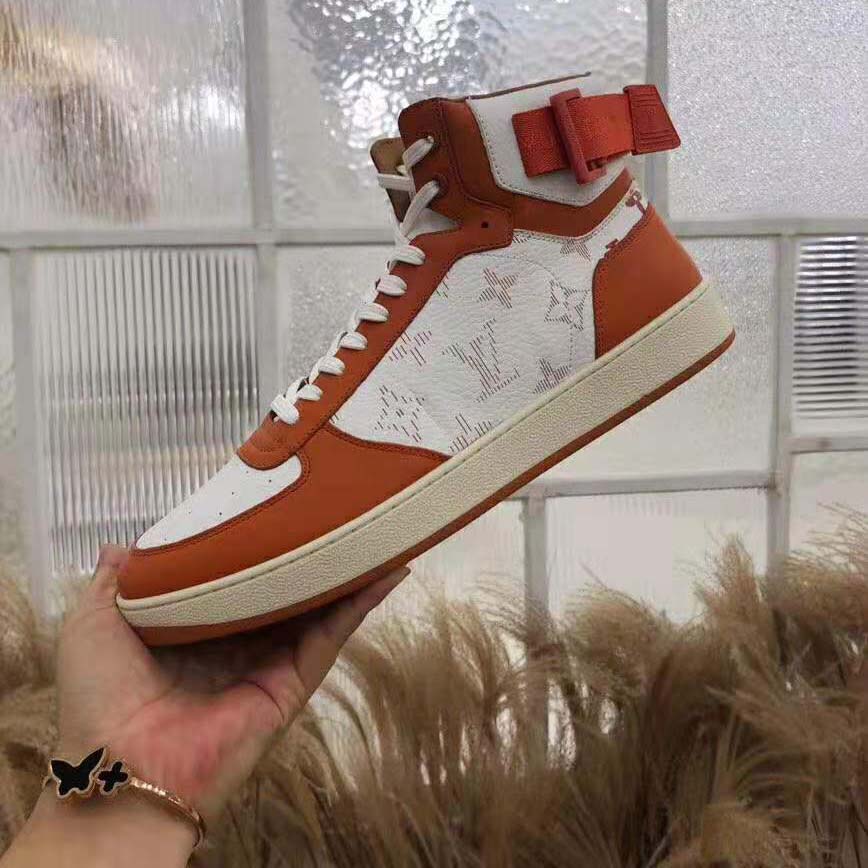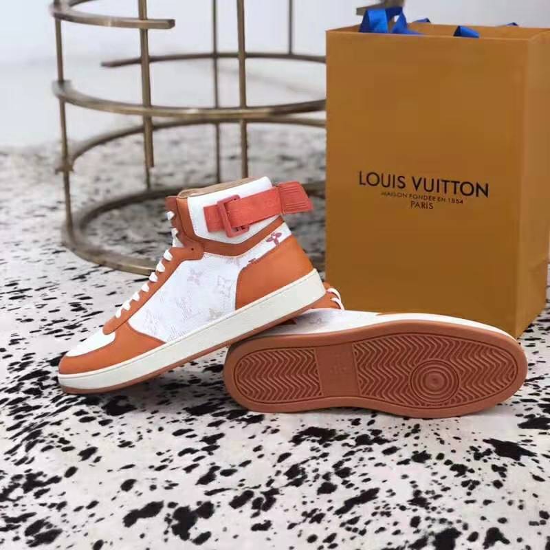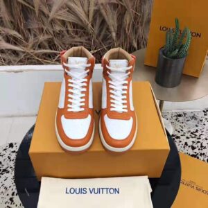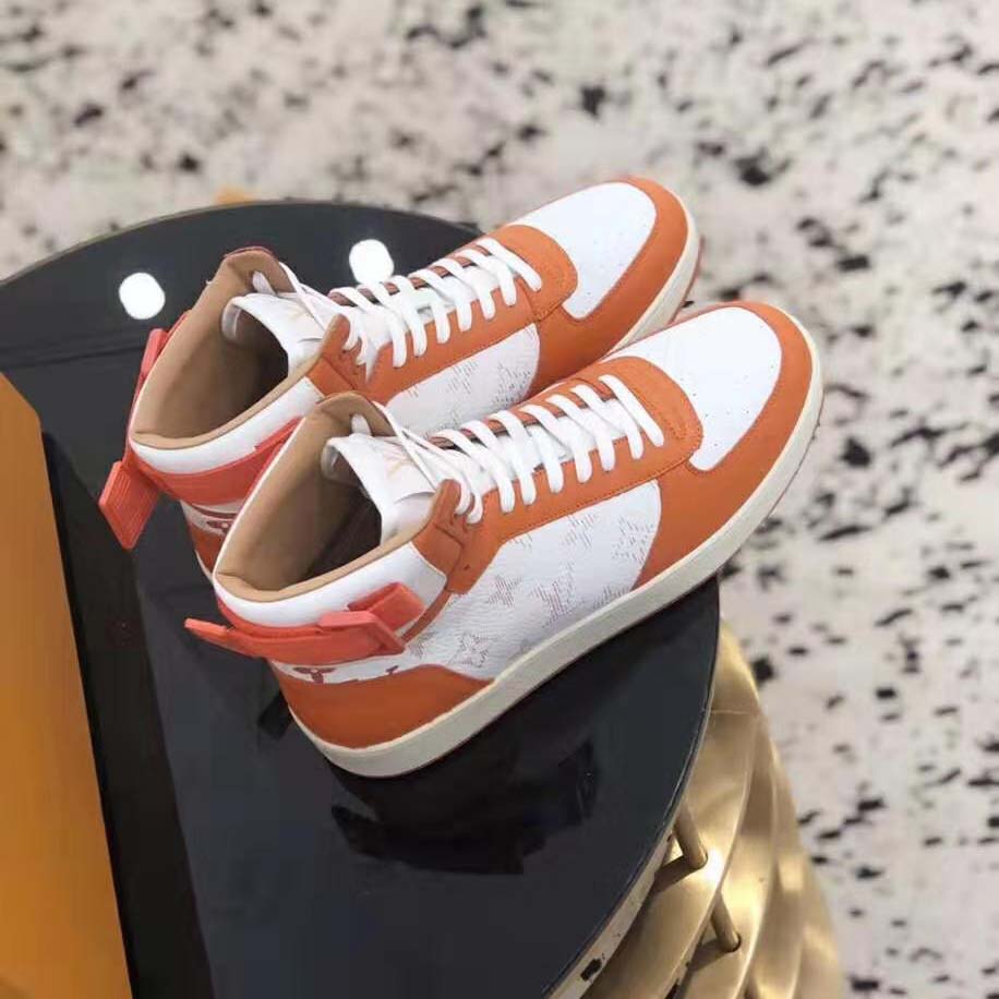 This hi-top features a padded tongue, embossed in gold with the LV Initials, and a velcro strap which can be worn at the front or back.