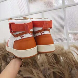 The Rivoli sneaker boot comes in white grained calf leather with contrasting colored trim.
