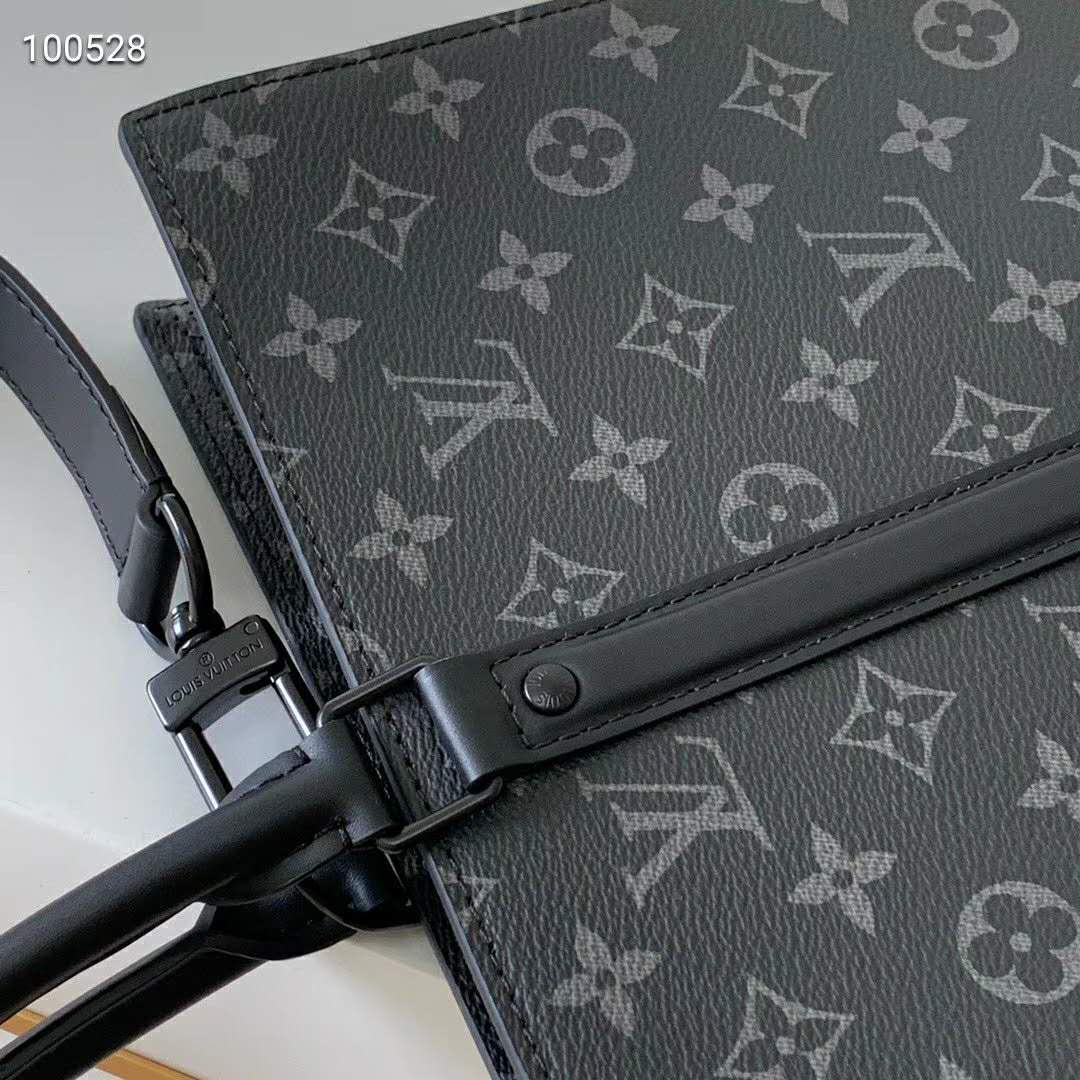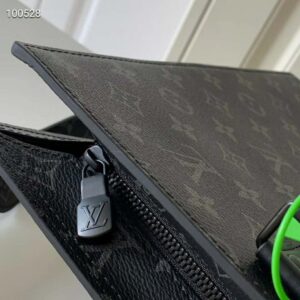 The Sac Plat Horizontal Zipper bag is made from Monogram Eclipse canvas and black leather and signed with discreet embossed LV Initials.