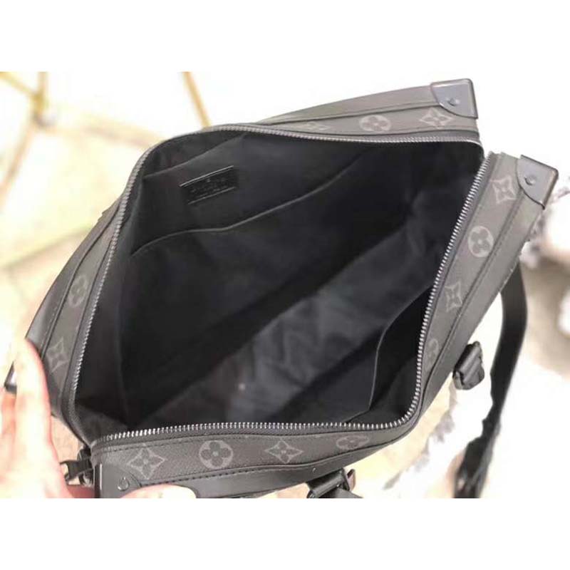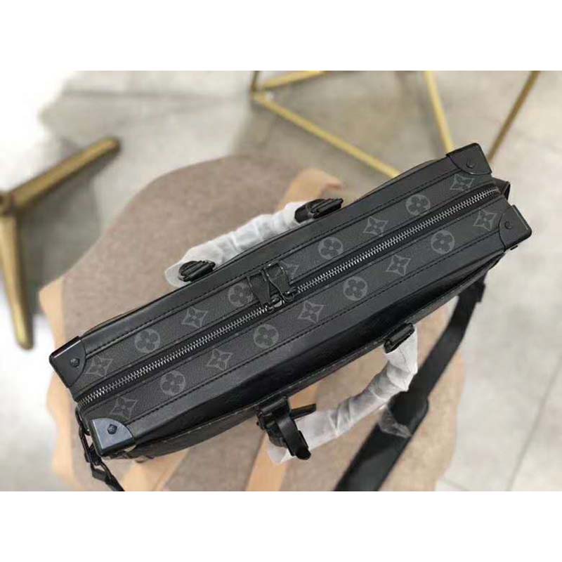 Fashioned from black-and-gray Monogram Eclipse canvas, the boxy lines and reinforced corners of the Soft Trunk Briefcase evoke Louis Vuitton’s legacy as trunk makers.