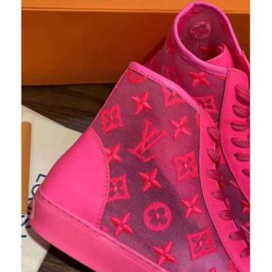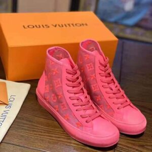 This original interpretation of the Tattoo sneaker boot comes in transparent textile embroidered with Louis Vuitton’s iconic Monogram pattern.