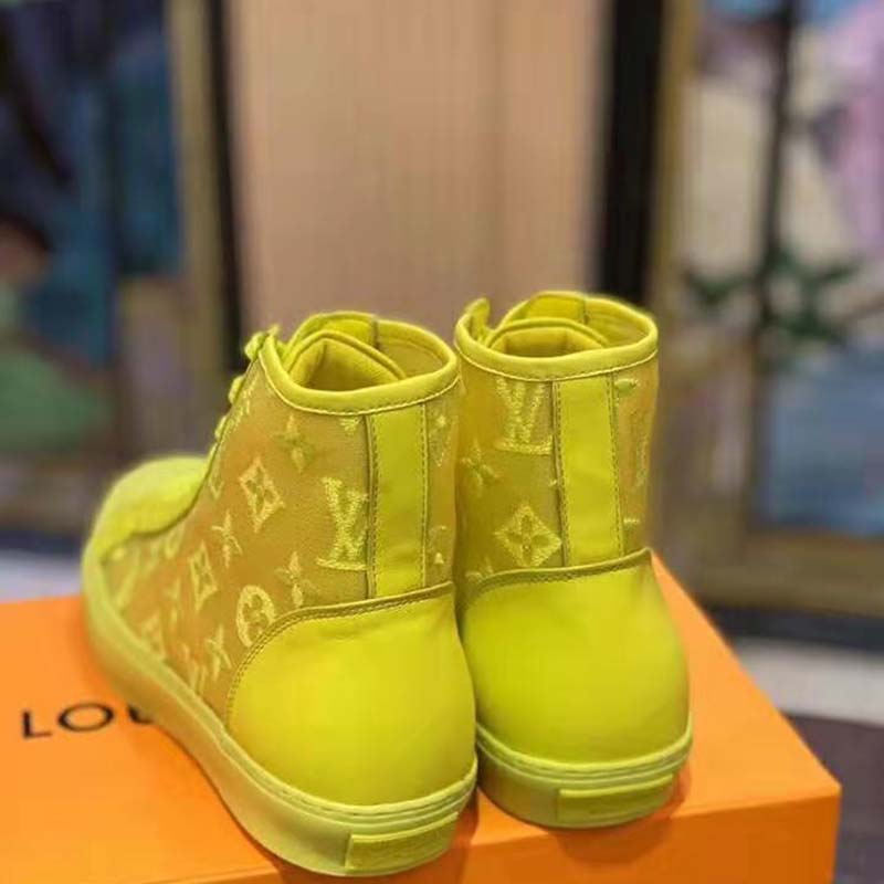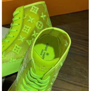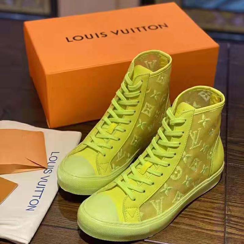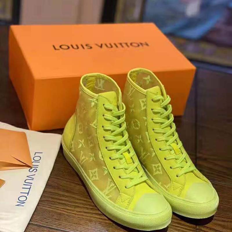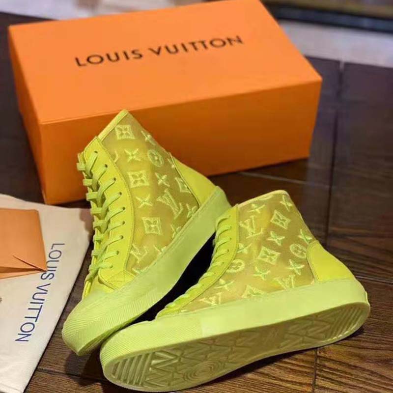 This original interpretation of the Tattoo sneaker boot comes in transparent textile embroidered with Louis Vuitton’s iconic Monogram pattern.